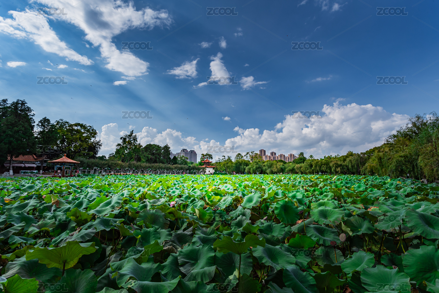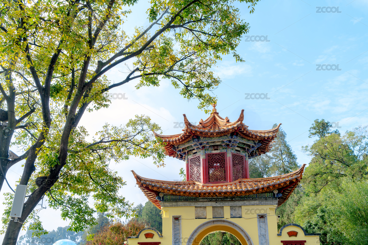 云南昆明大觀樓公園藍(lán)天白云古建筑園林景觀