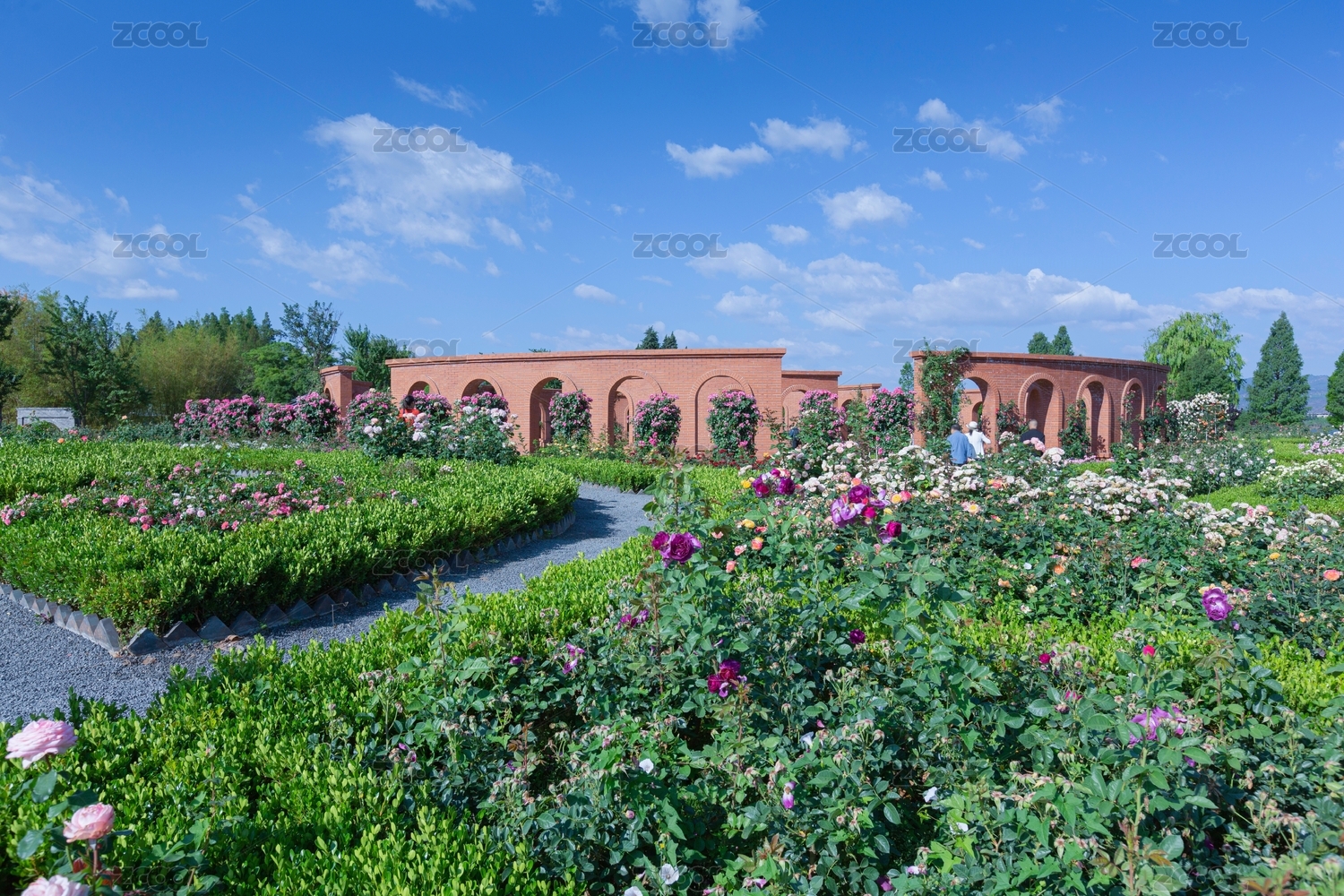 中國(guó)云南昆明大觀樓公園月季園園林景觀
