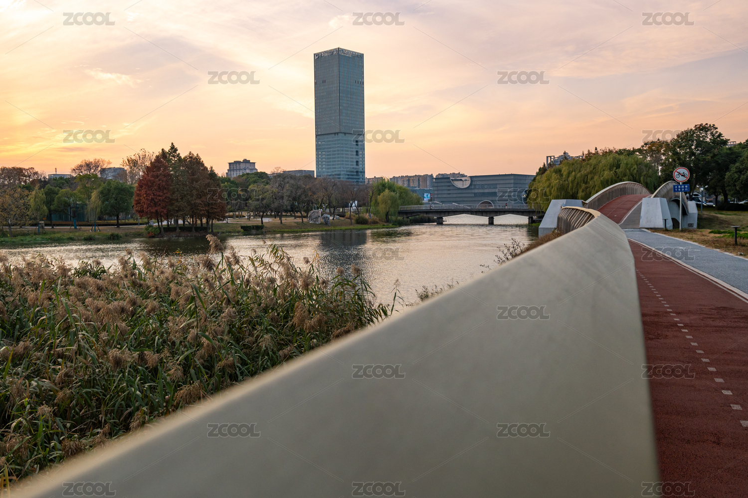 中國上海市嘉定區(qū)遠香湖日落風景