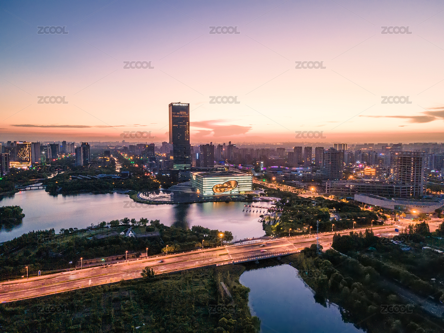 上海嘉定遠香湖黃昏航拍