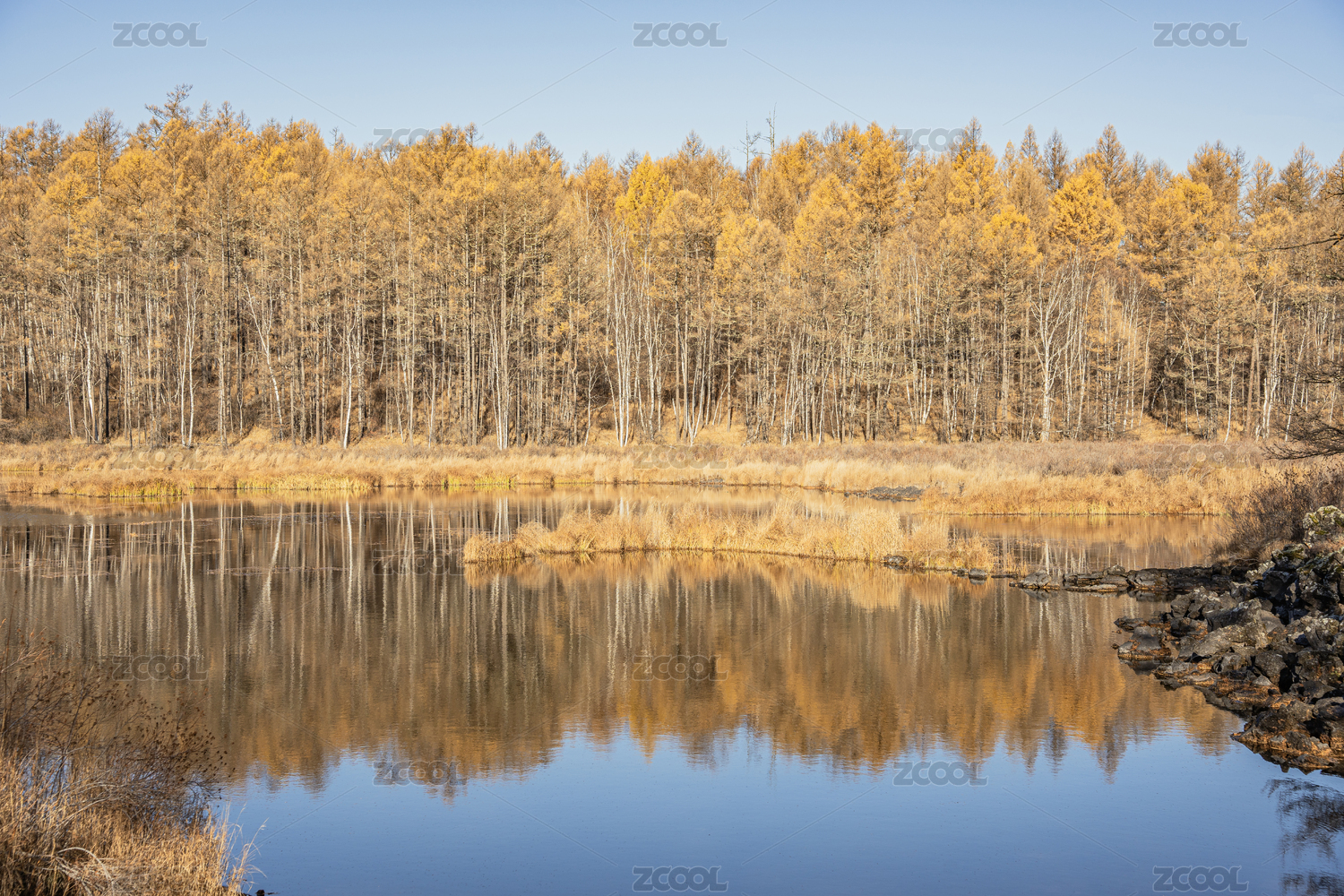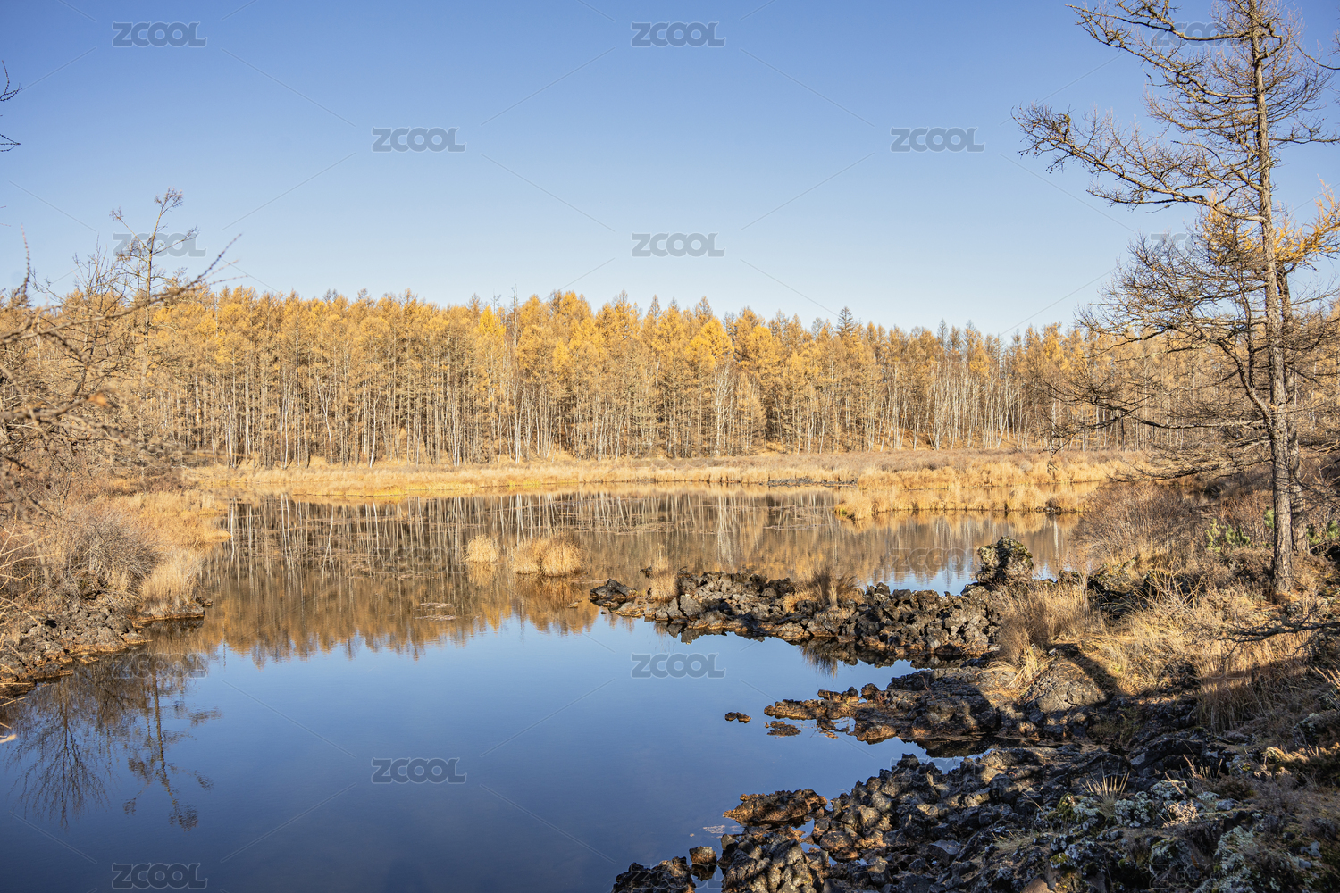 中國內蒙古阿爾山森林公園石塘林秋景平拍