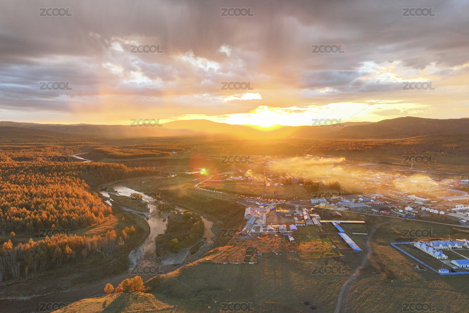 阿爾山河谷日落秋色