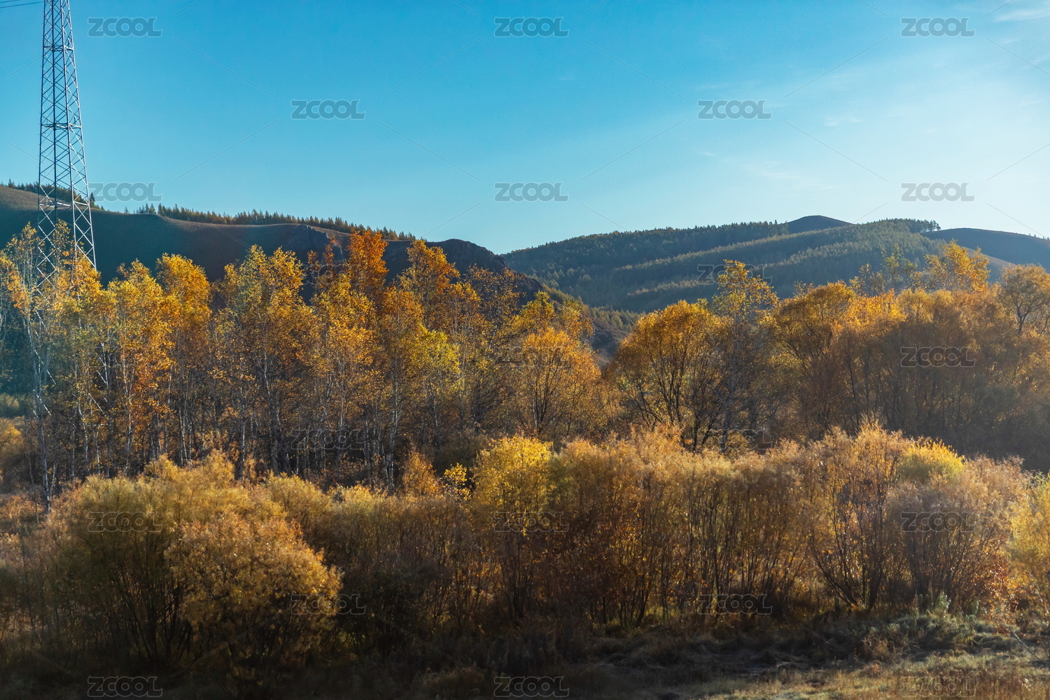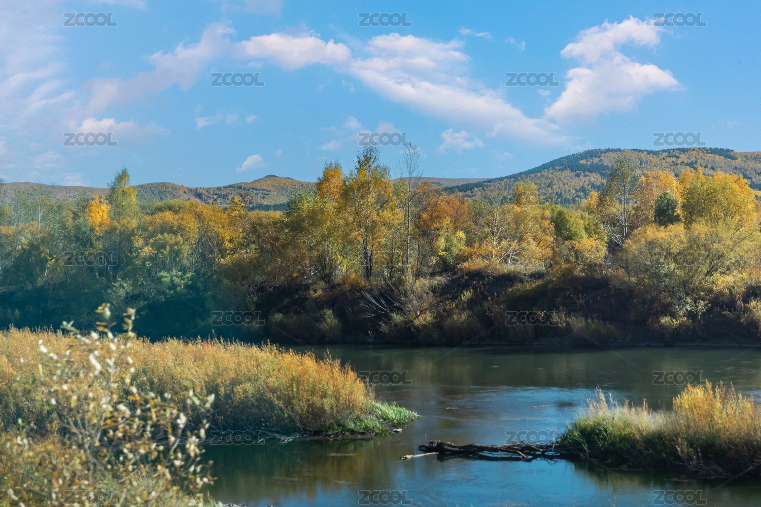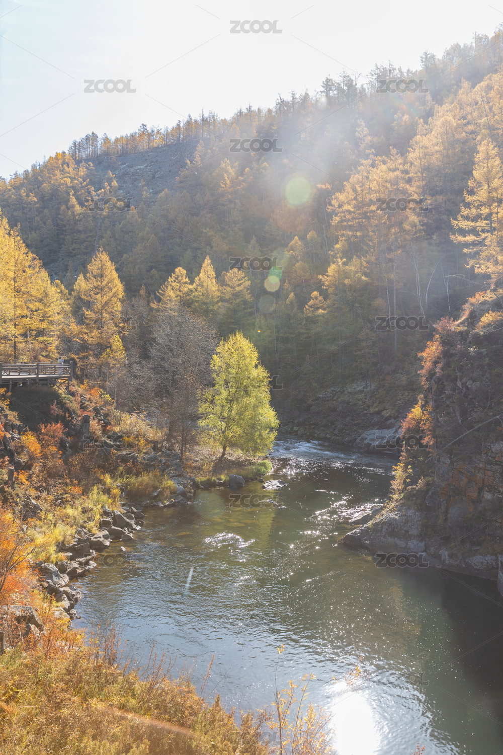 阿爾山河谷森林秋色景觀
