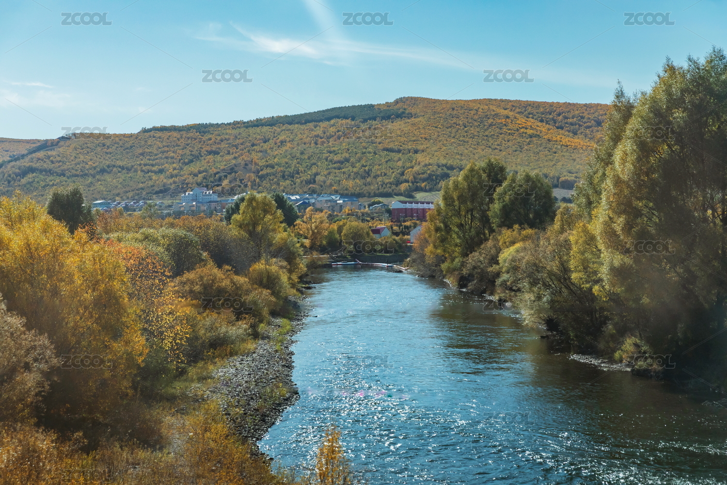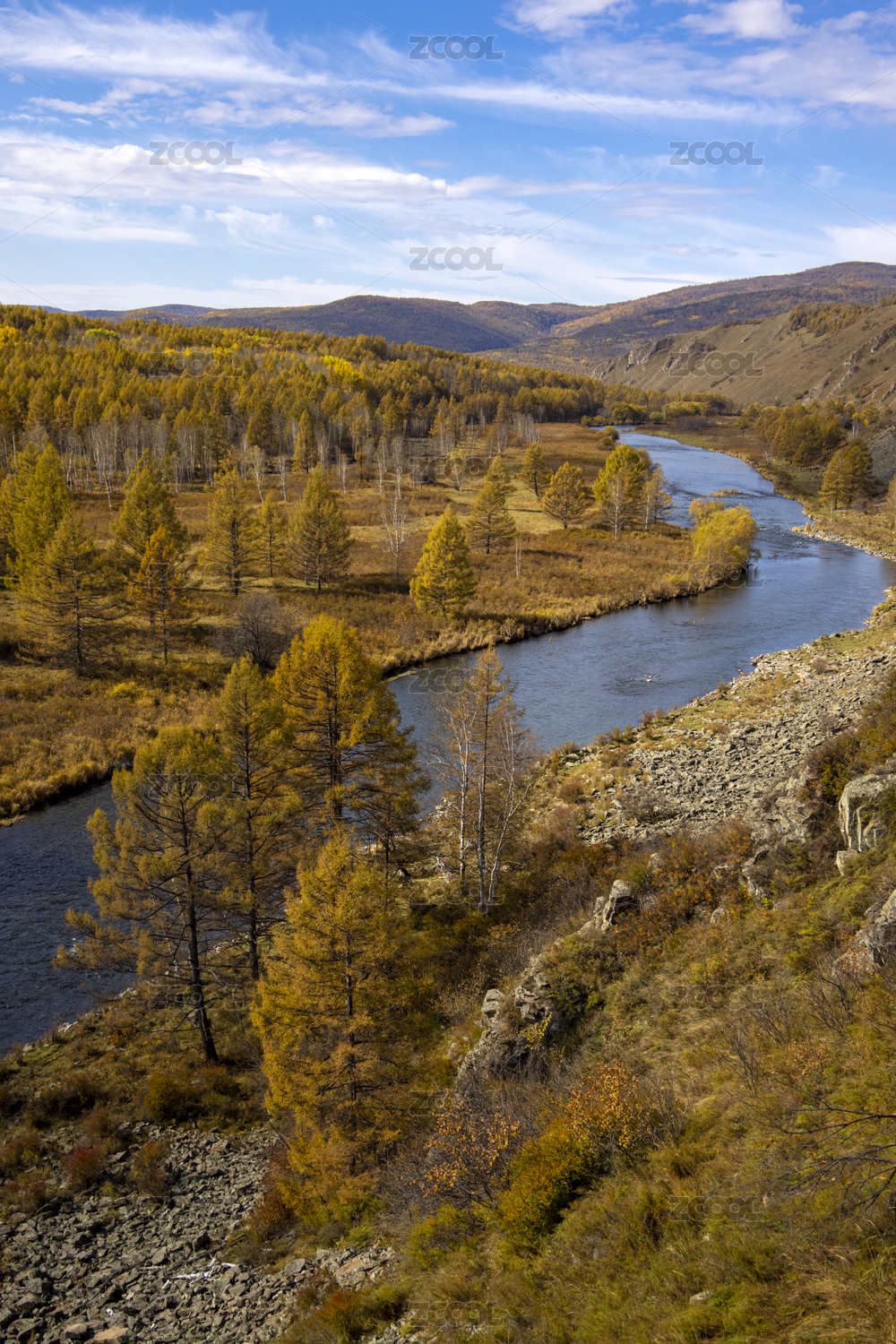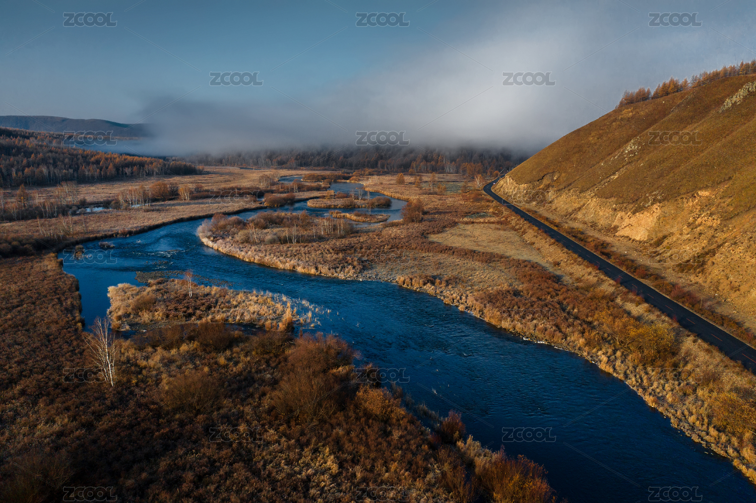 阿爾山河谷森林秋色景觀