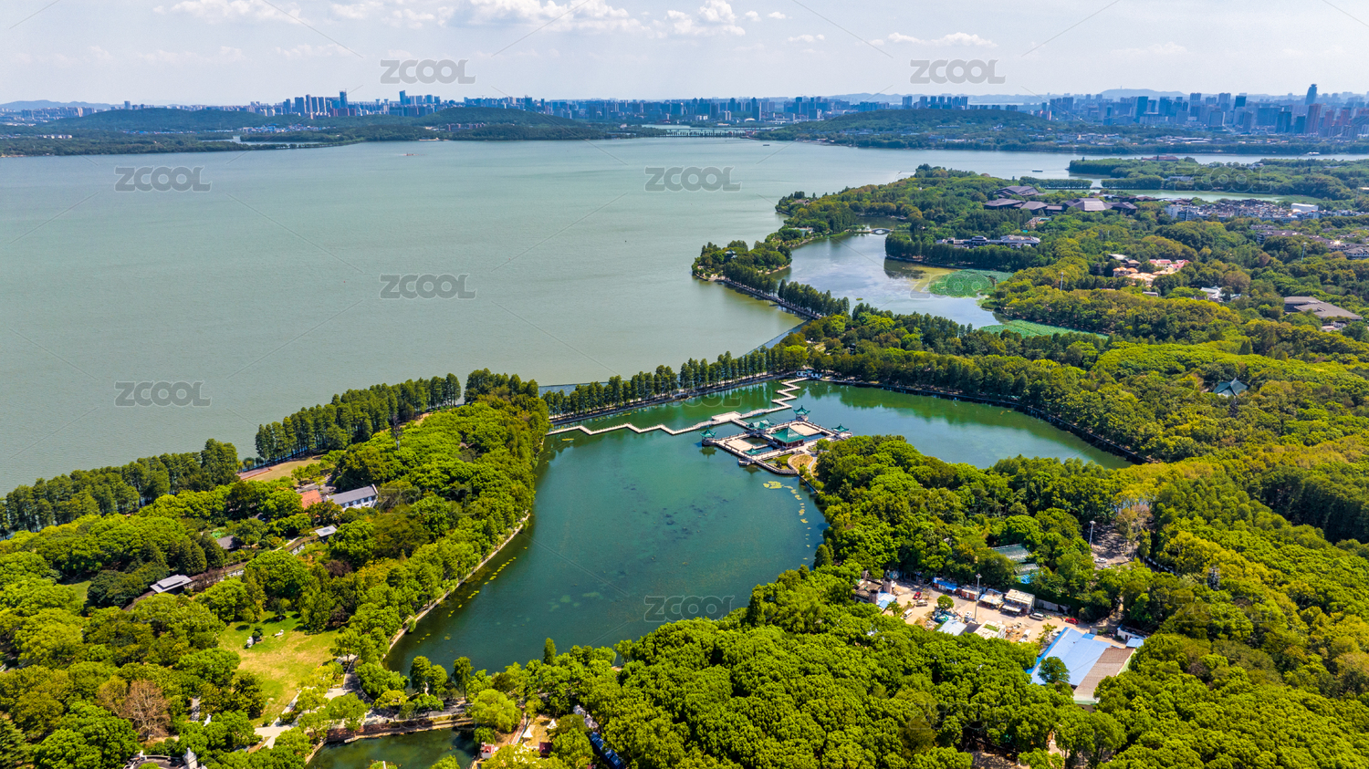 航拍中國湖北武漢東湖聽濤景區(qū)