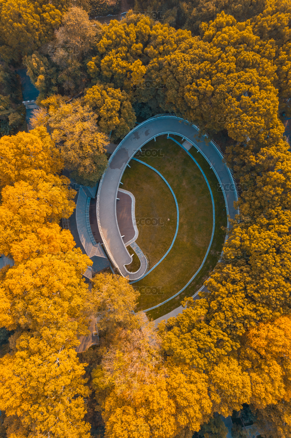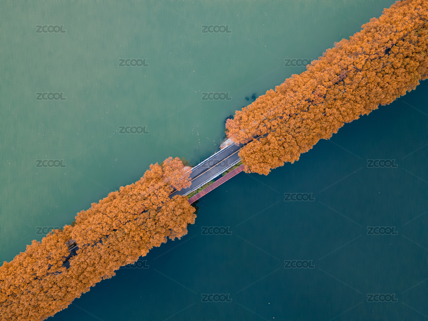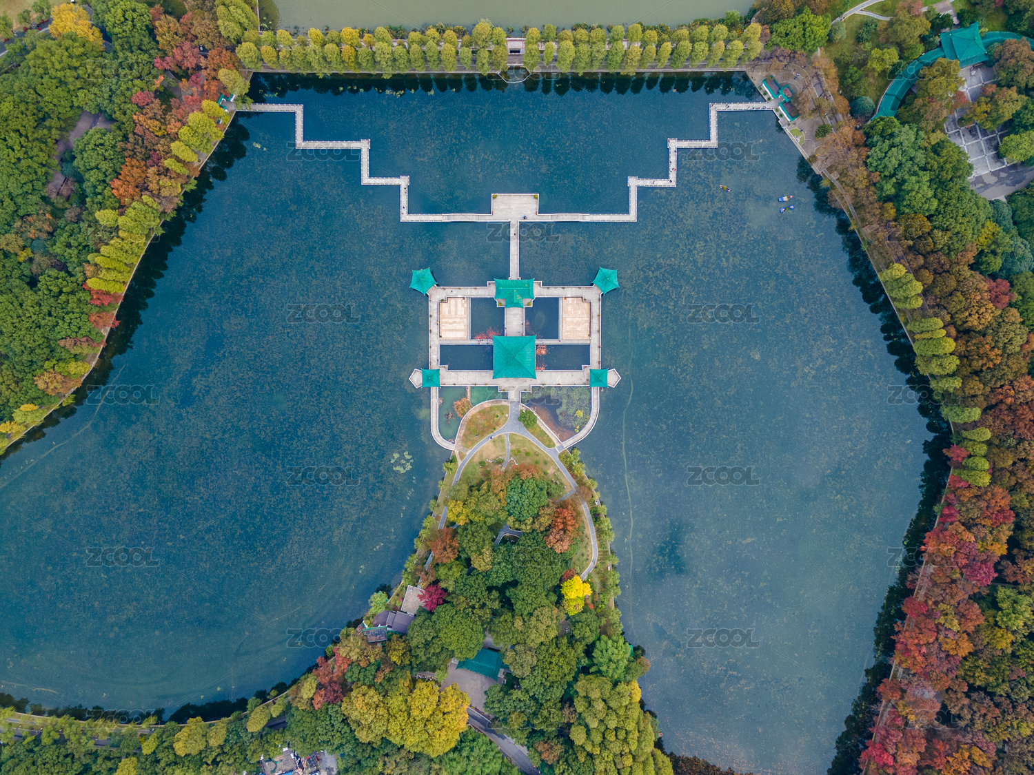航拍武漢東湖聽濤景區(qū)行吟閣秋景