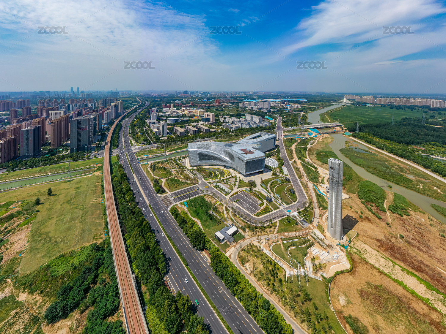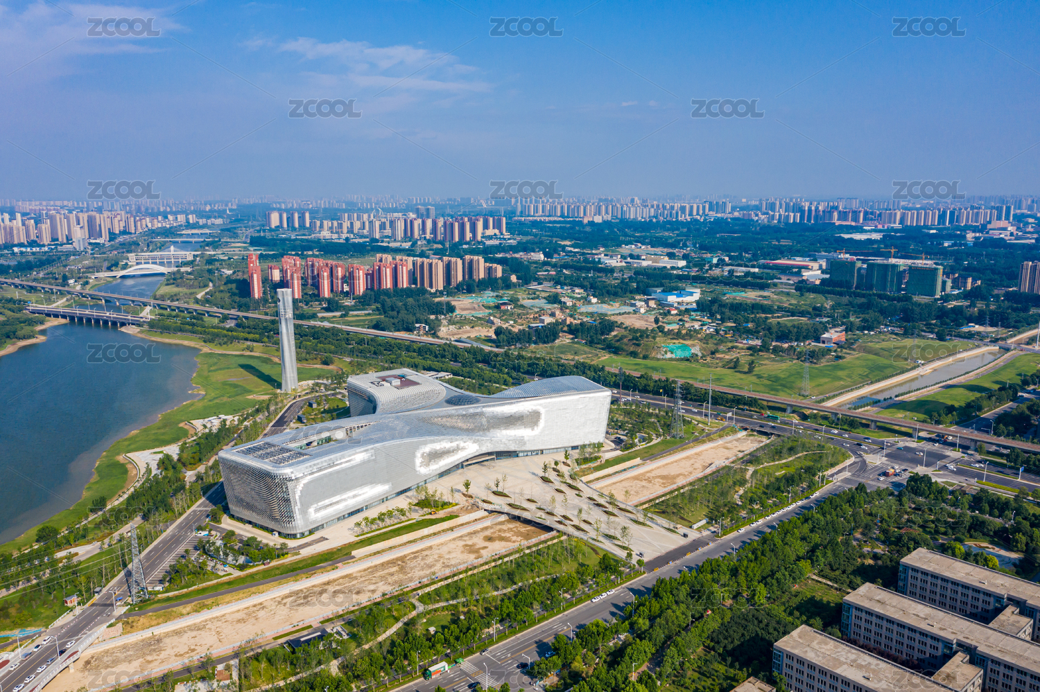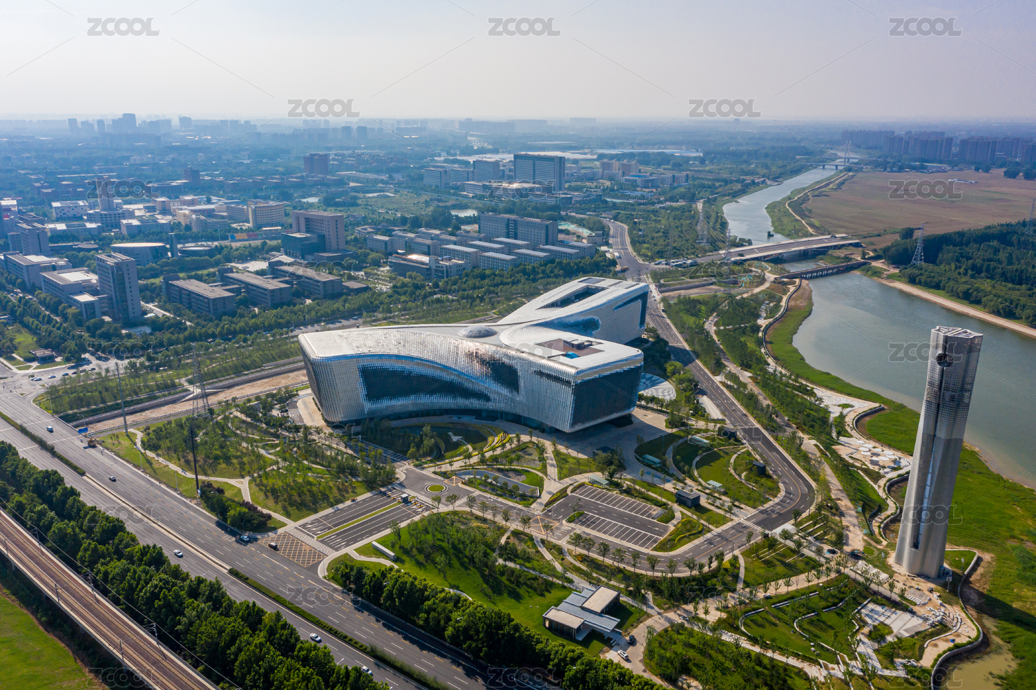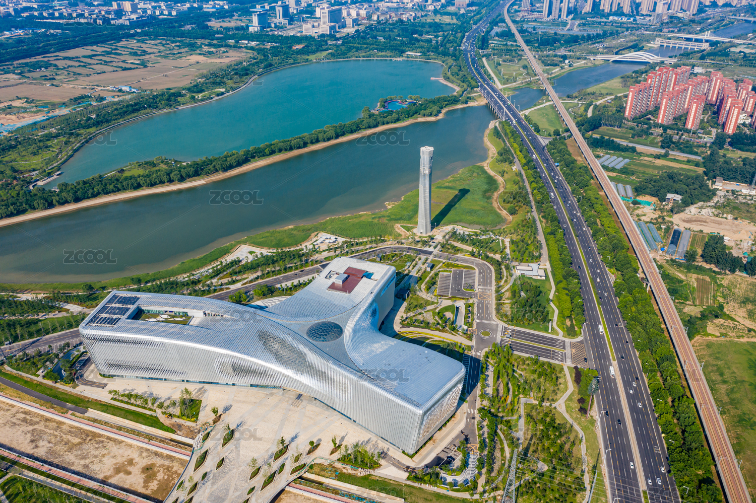 航拍河南鄭州白沙園區(qū)河南省科技館新館建筑
