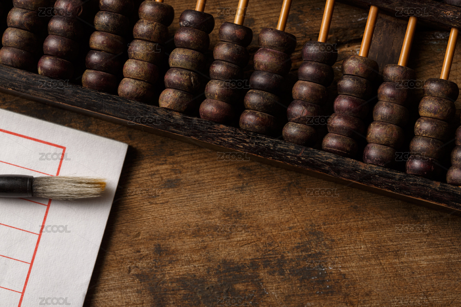 老木桌上的算盤特寫