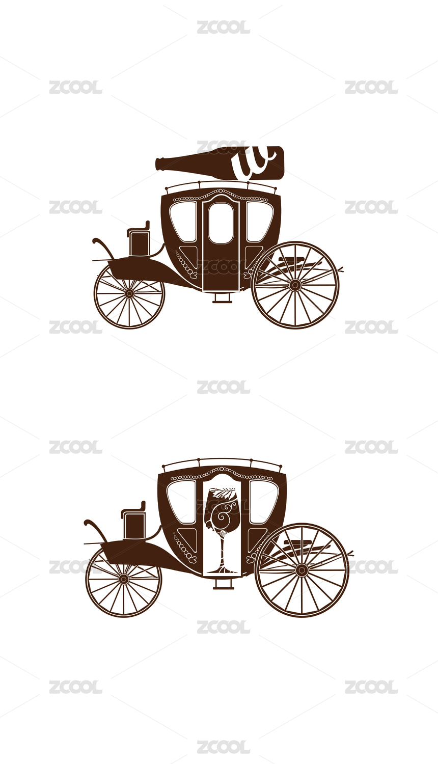 古典花紋歐式馬車紅酒酒杯剪影圖案標(biāo)識標(biāo)志
