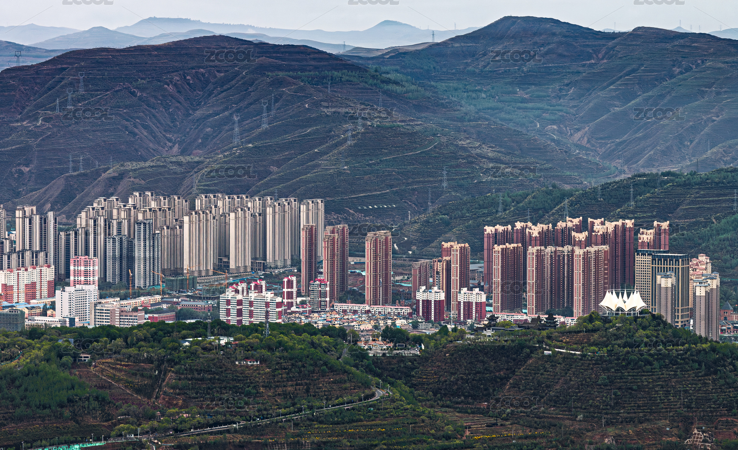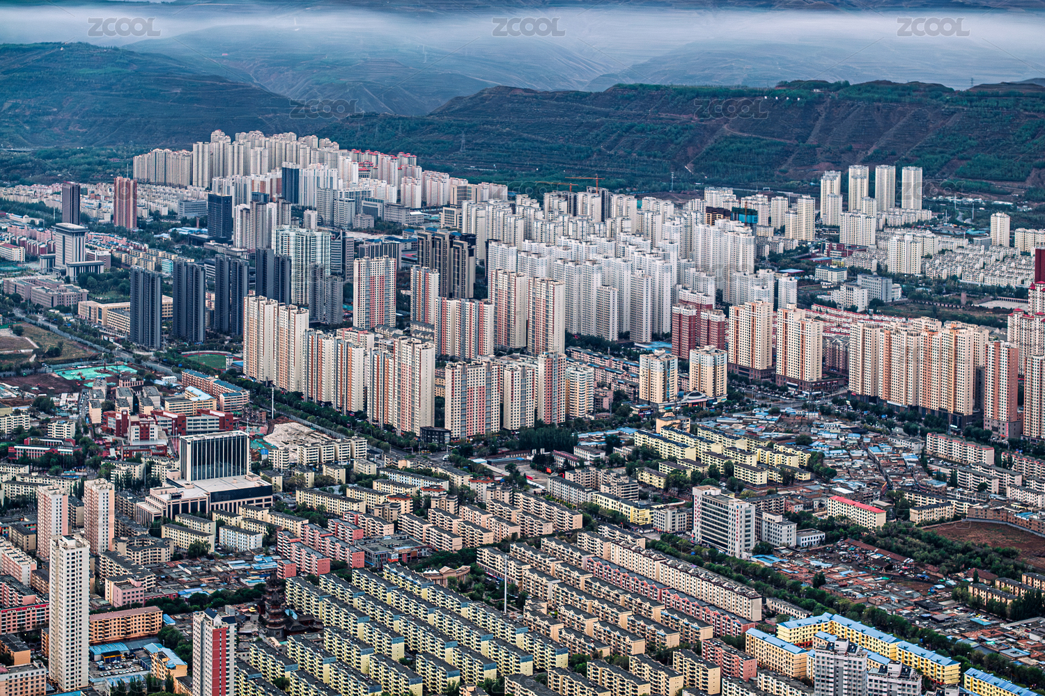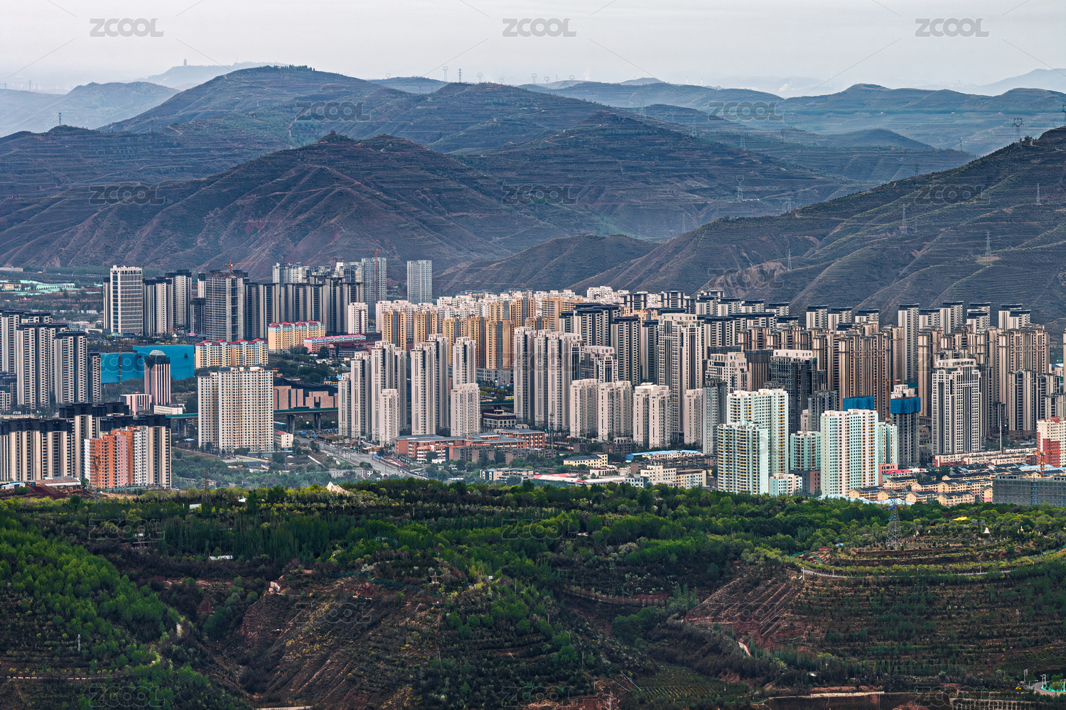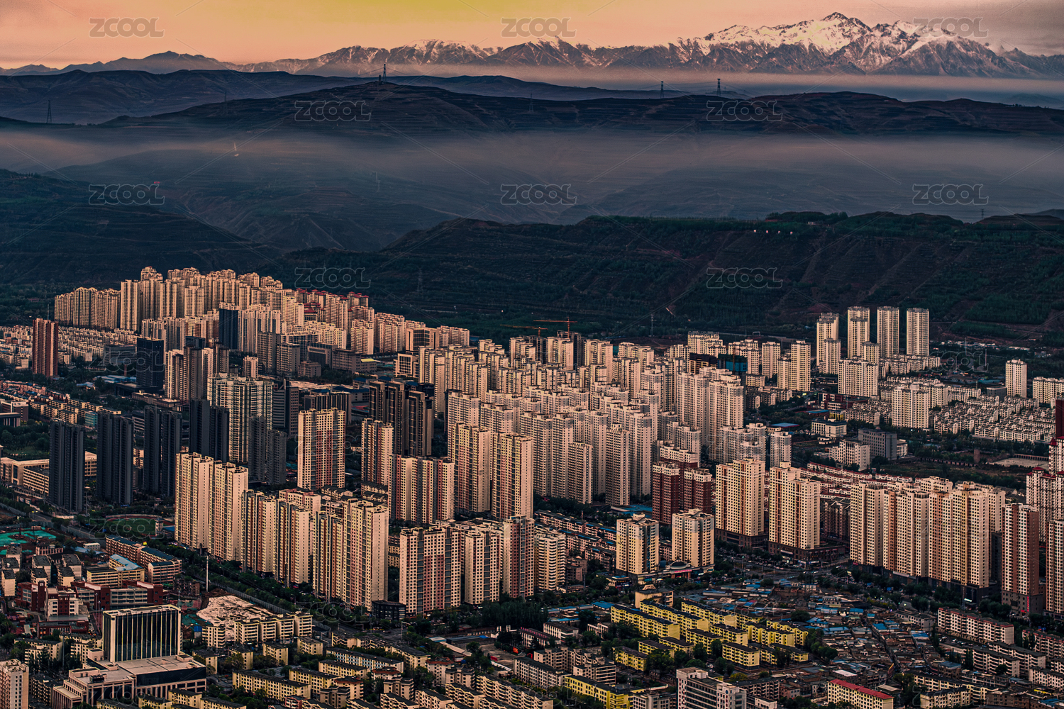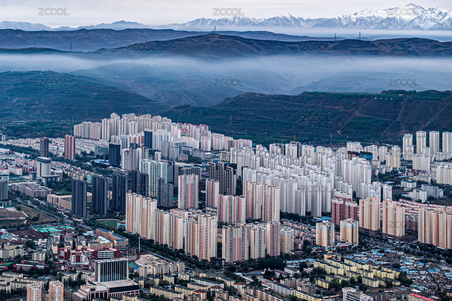 中國(guó)青海省西寧市城區(qū)清晨景觀
