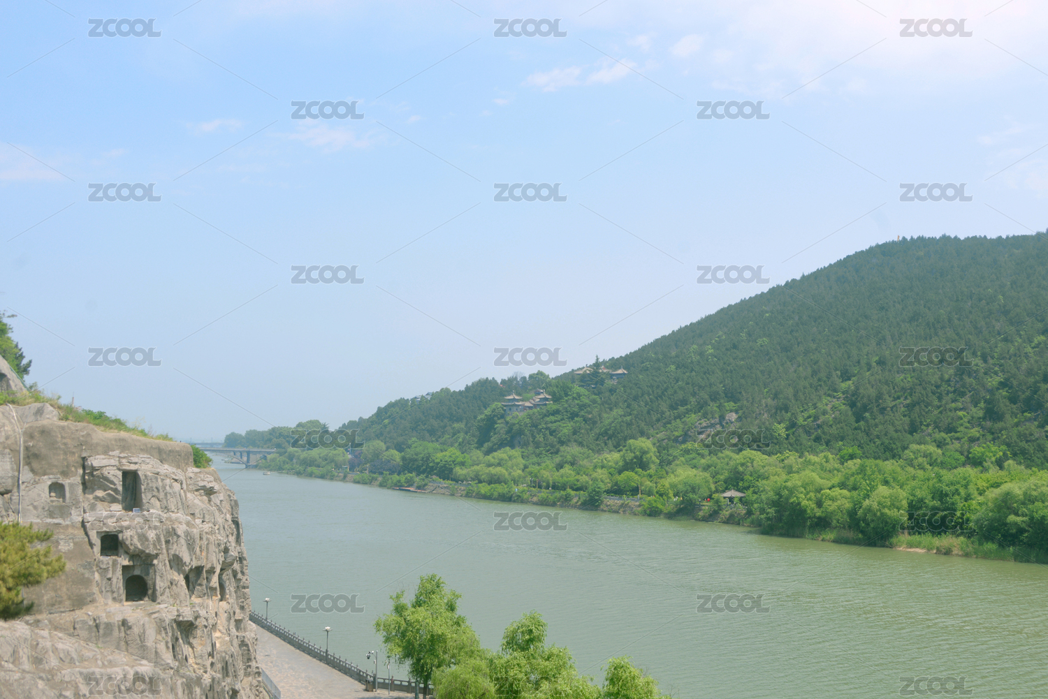 河南省洛陽(yáng)市龍門(mén)石窟伊河俯拍