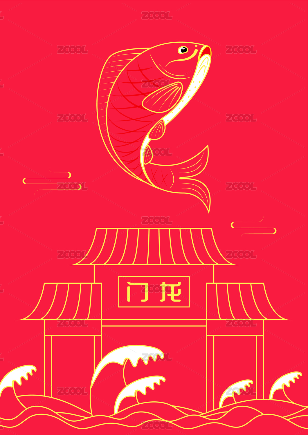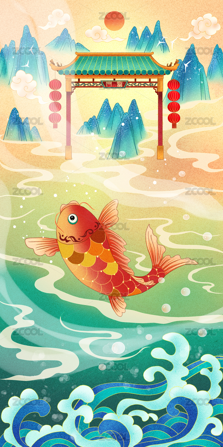 國(guó)潮插畫(huà)魚(yú)躍龍門(mén)