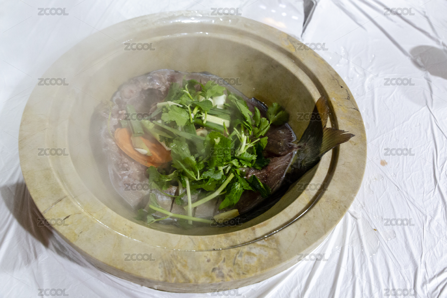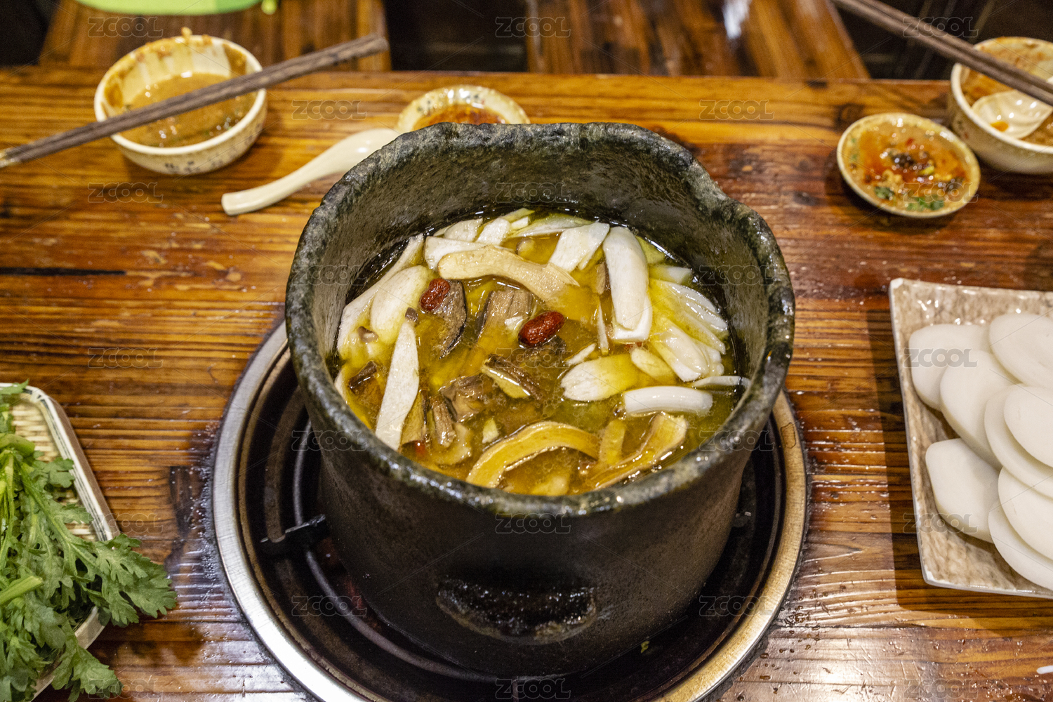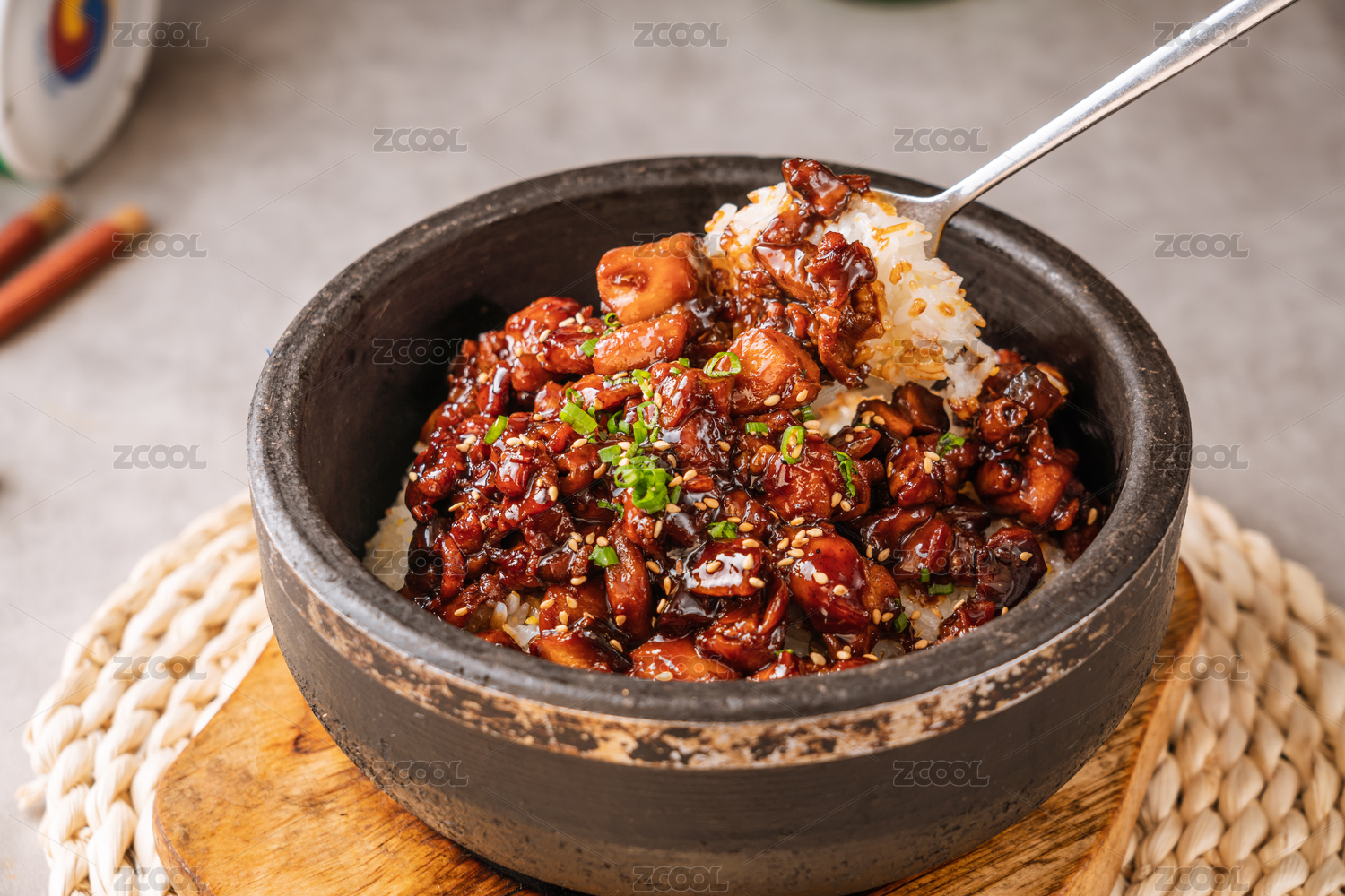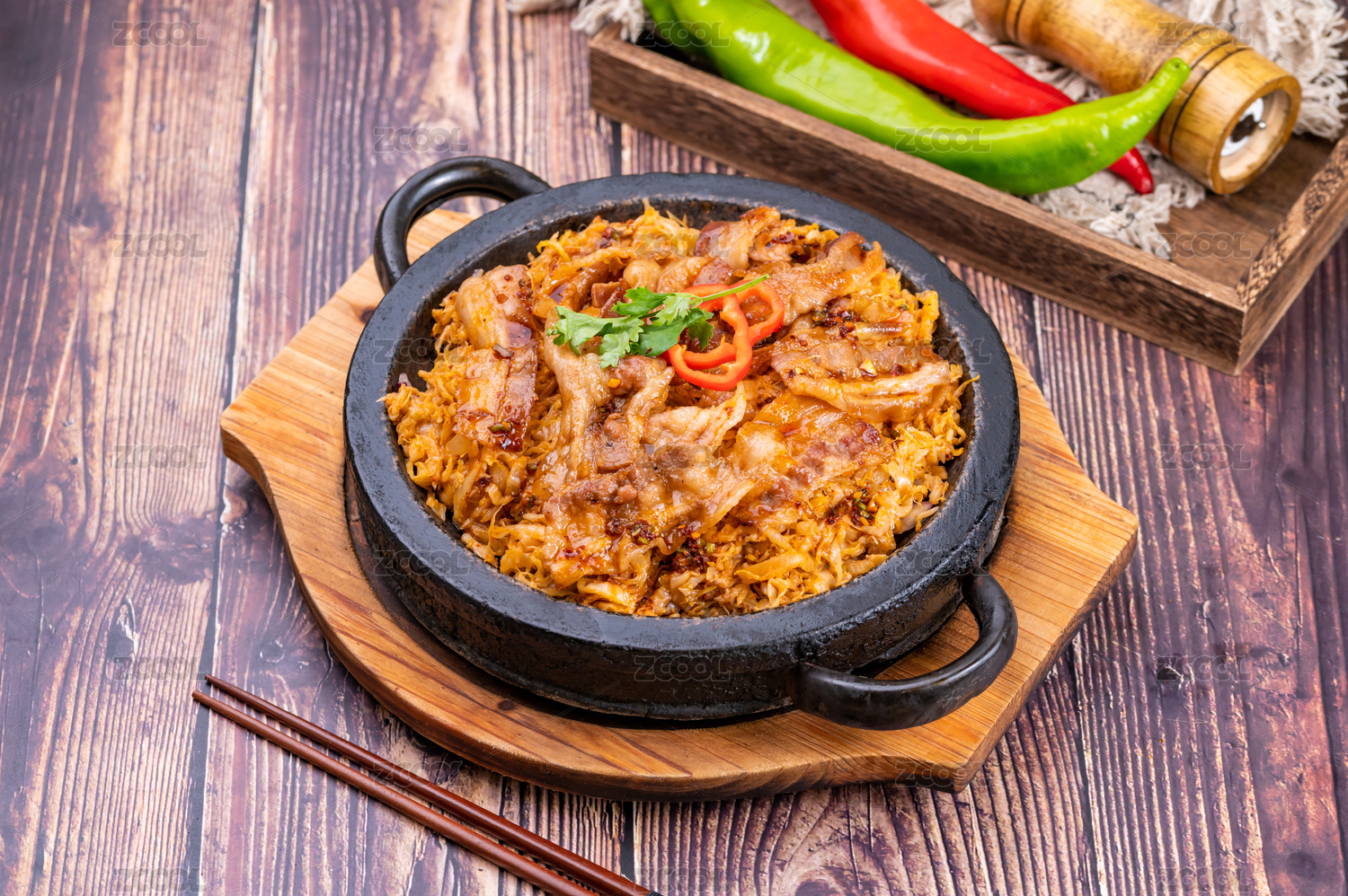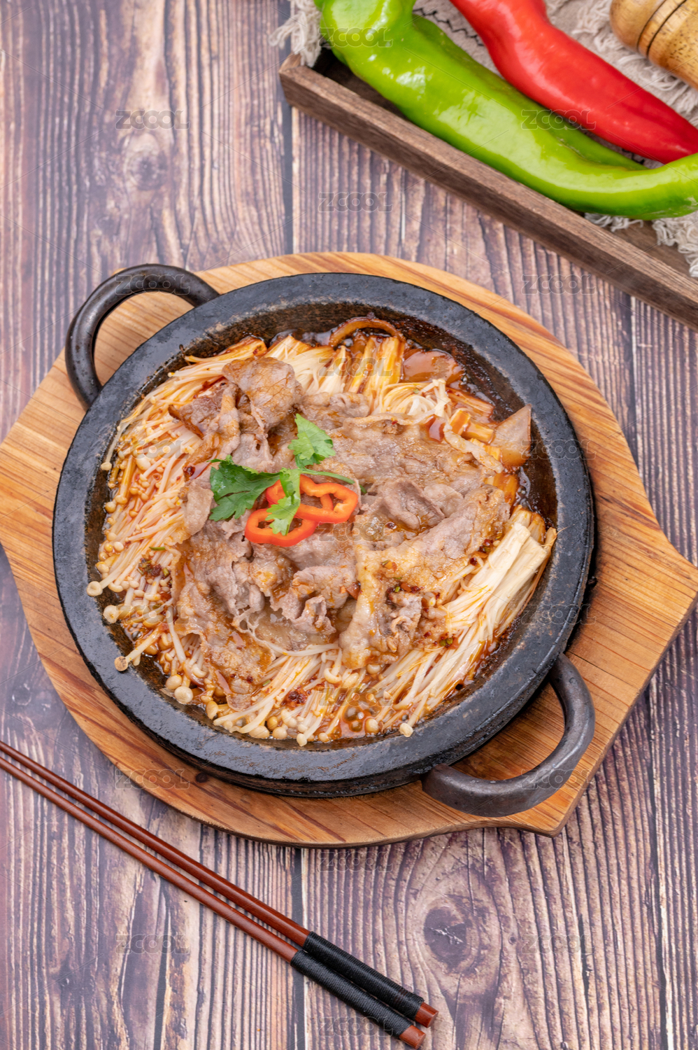 暗色水泥紋桌上放著一盤鐵板肉沫豆腐
