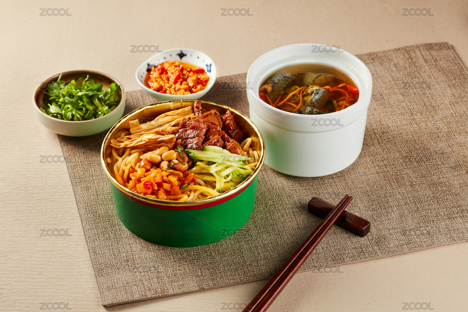 牛肉拌面鹵三角豆腐蟲草花烏雞湯套餐