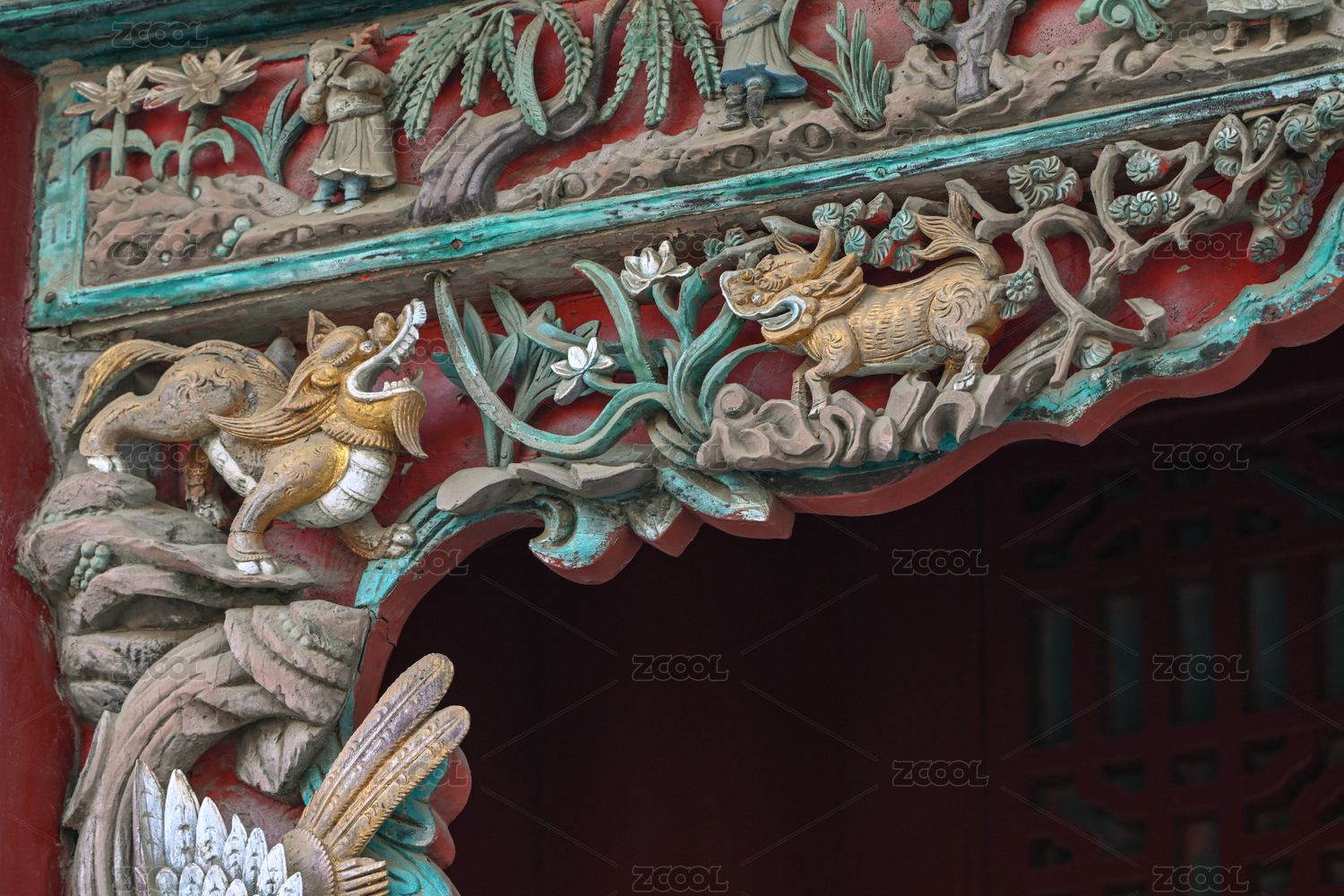 中國河南開封山陜甘會館內(nèi)大殿屋檐上的木雕