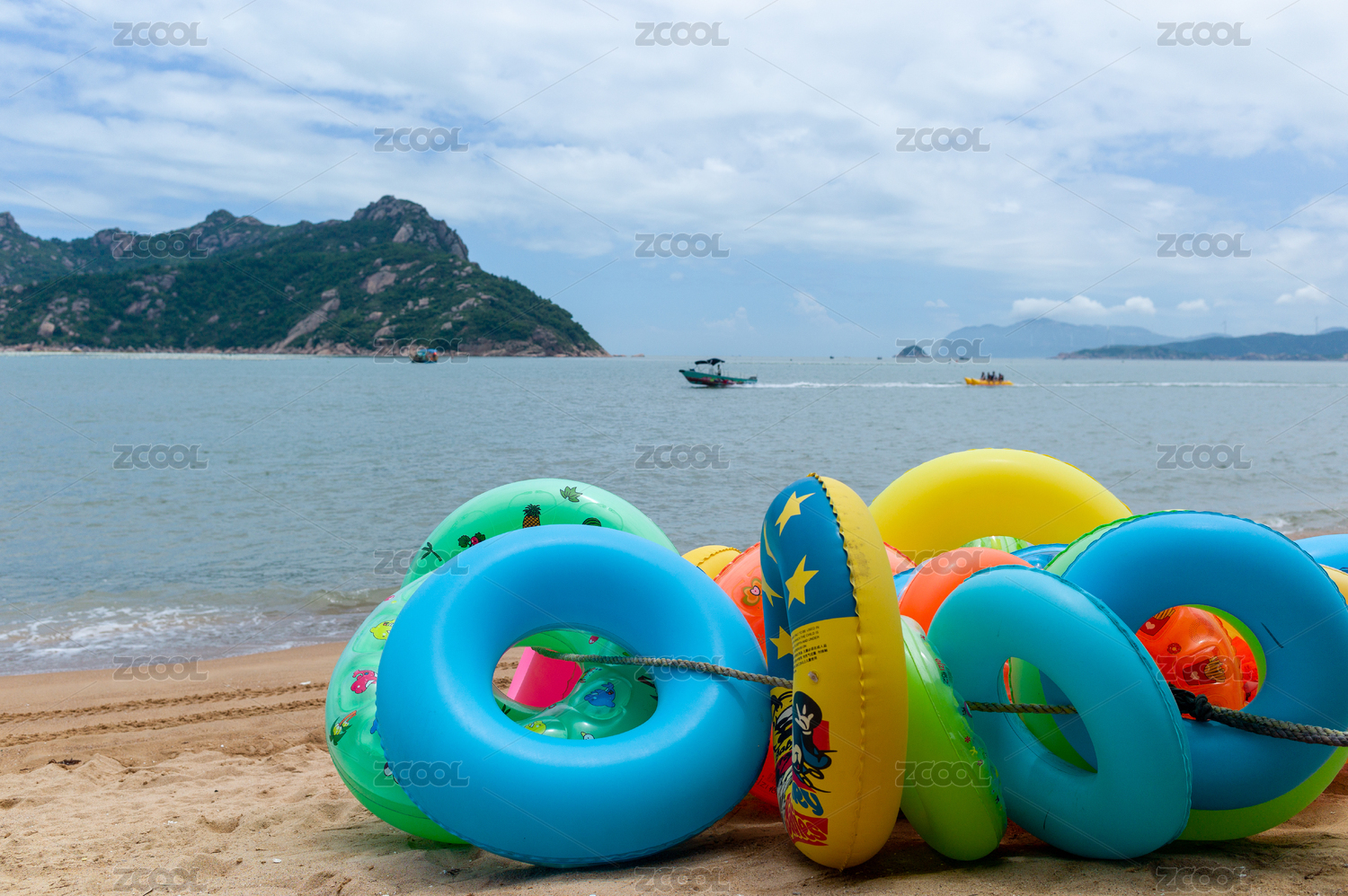 中國福建寧德霞浦大京沙灘海邊游泳圈