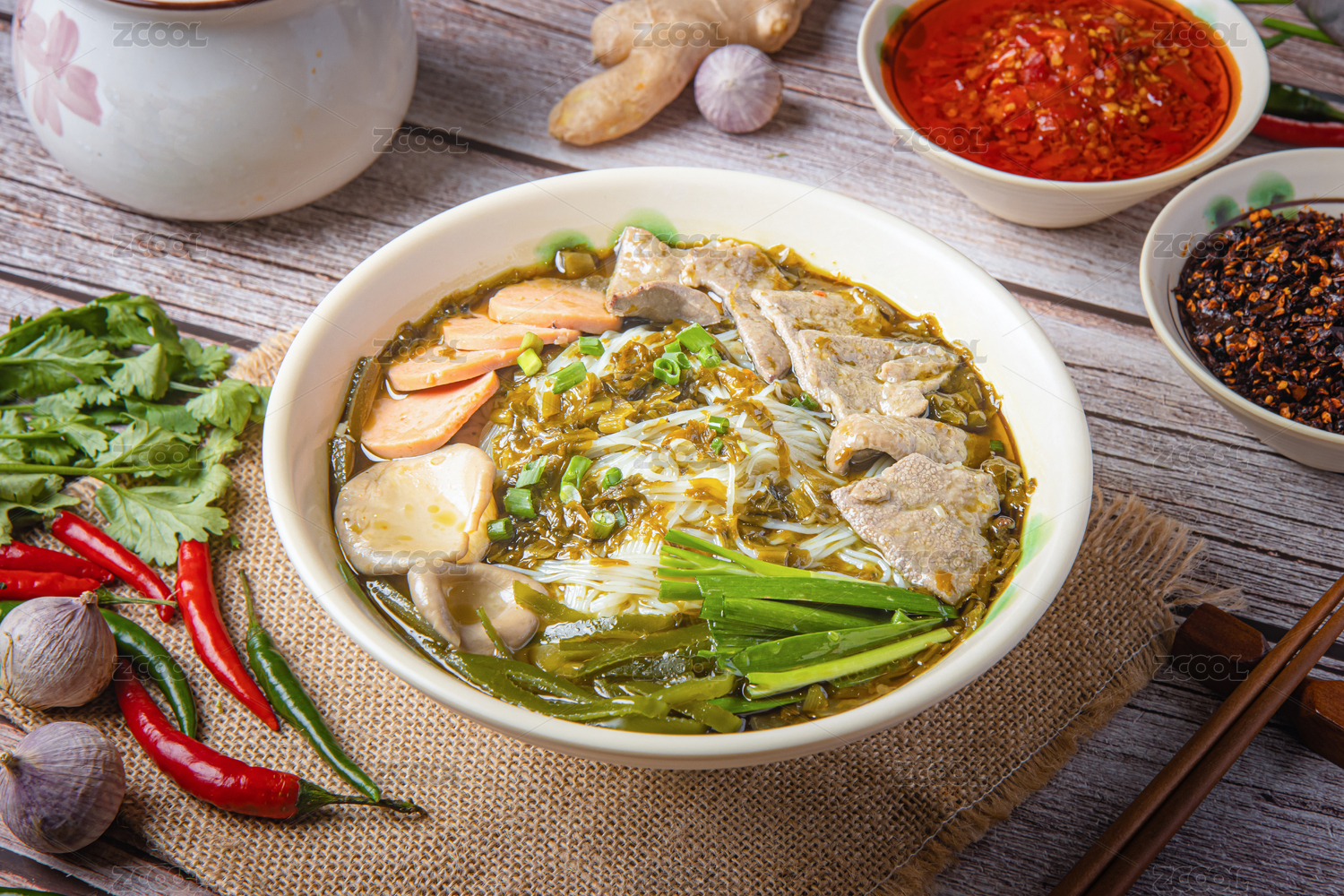 大碗里的四鮮米線酸菜豬肝米線米粉