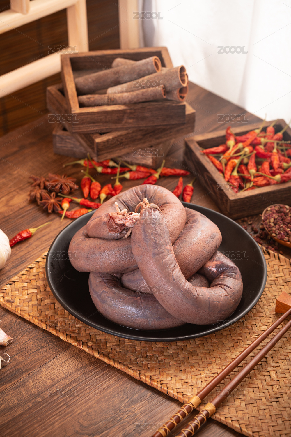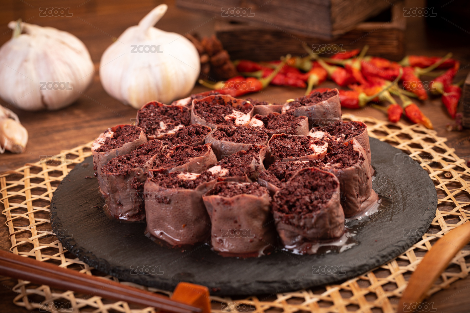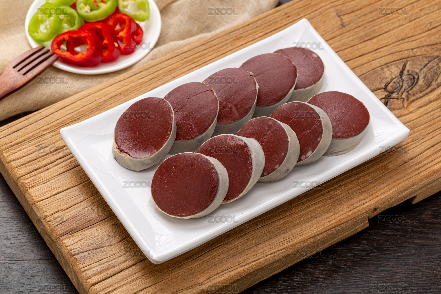 盤子里切片的河南安陽內(nèi)黃豬血灌腸食材