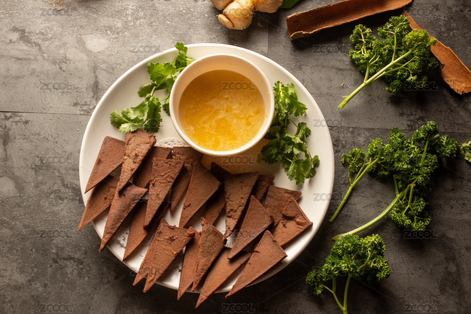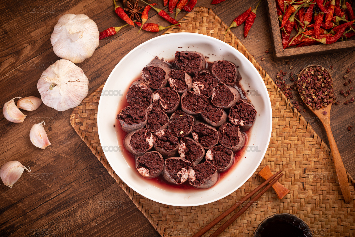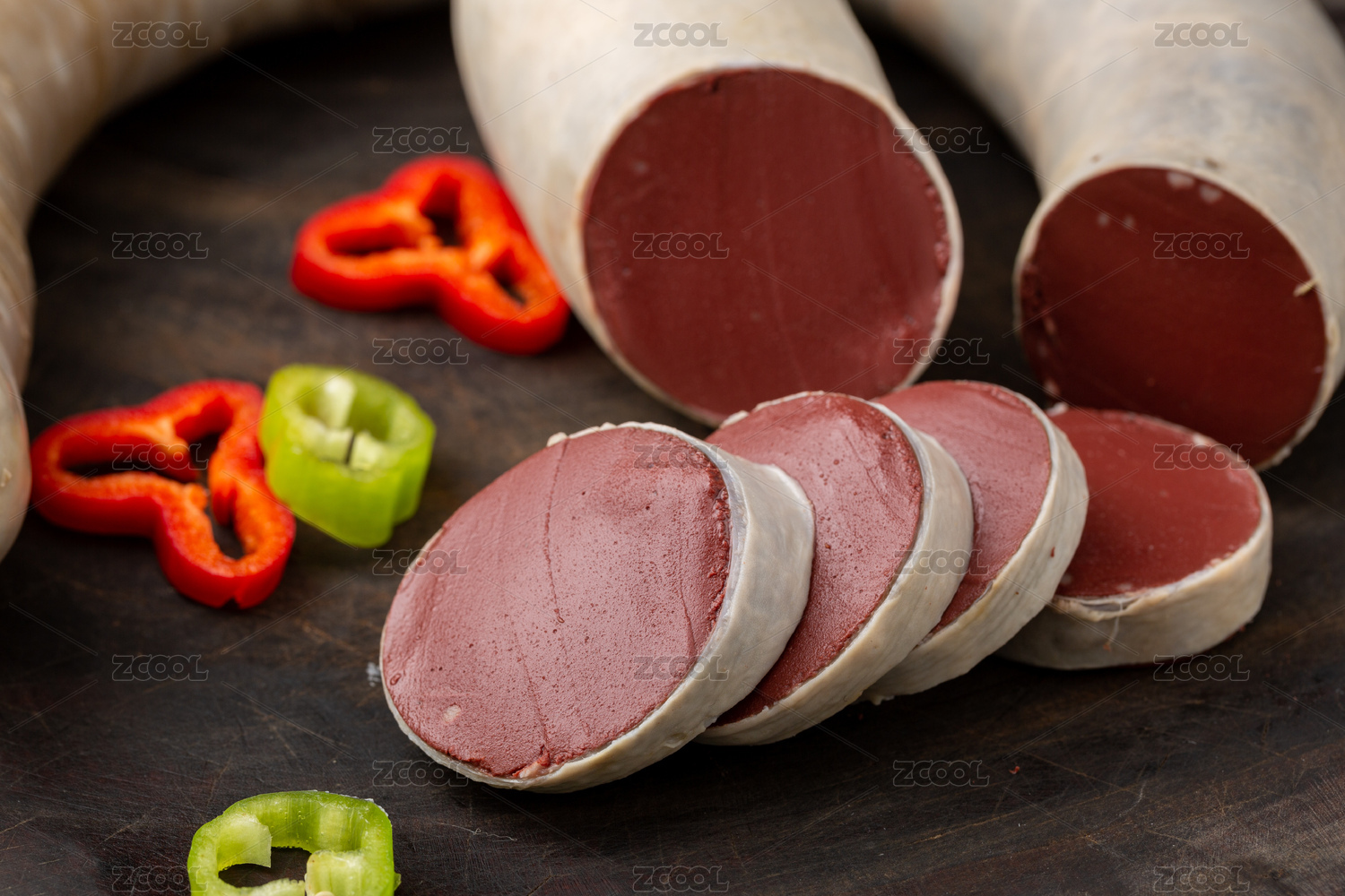 盤子里切片的河南安陽內(nèi)黃豬血灌腸食材