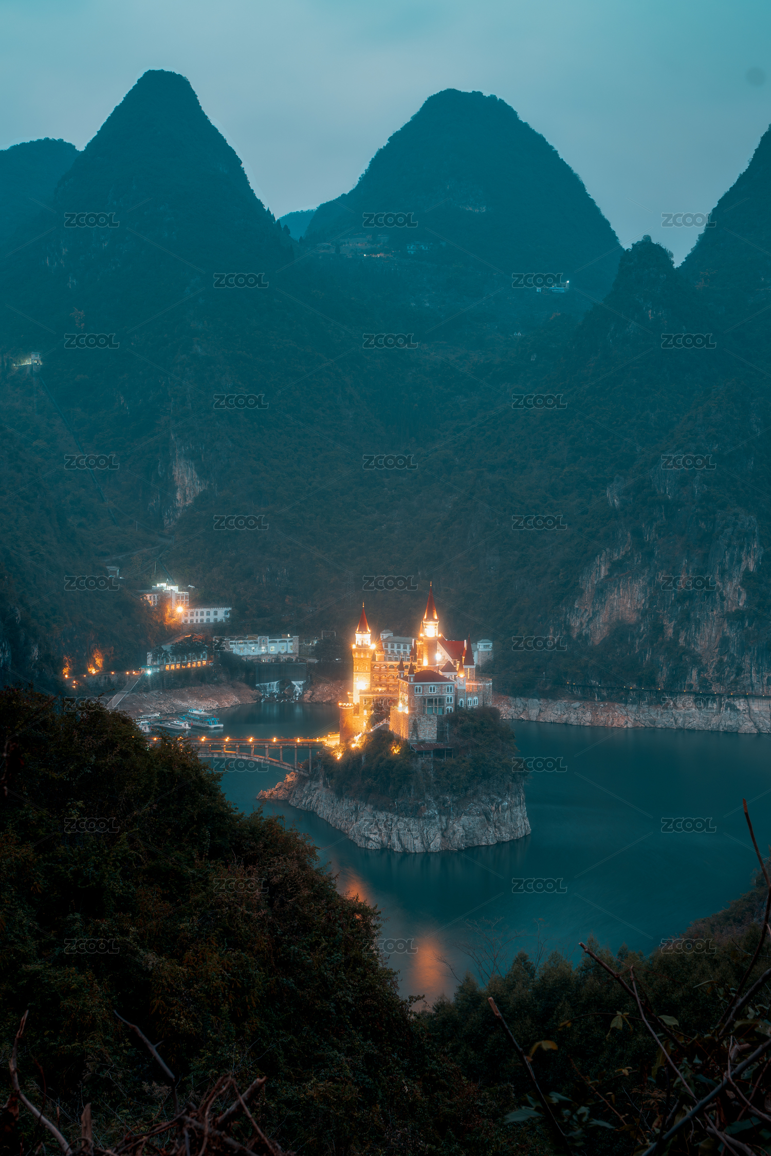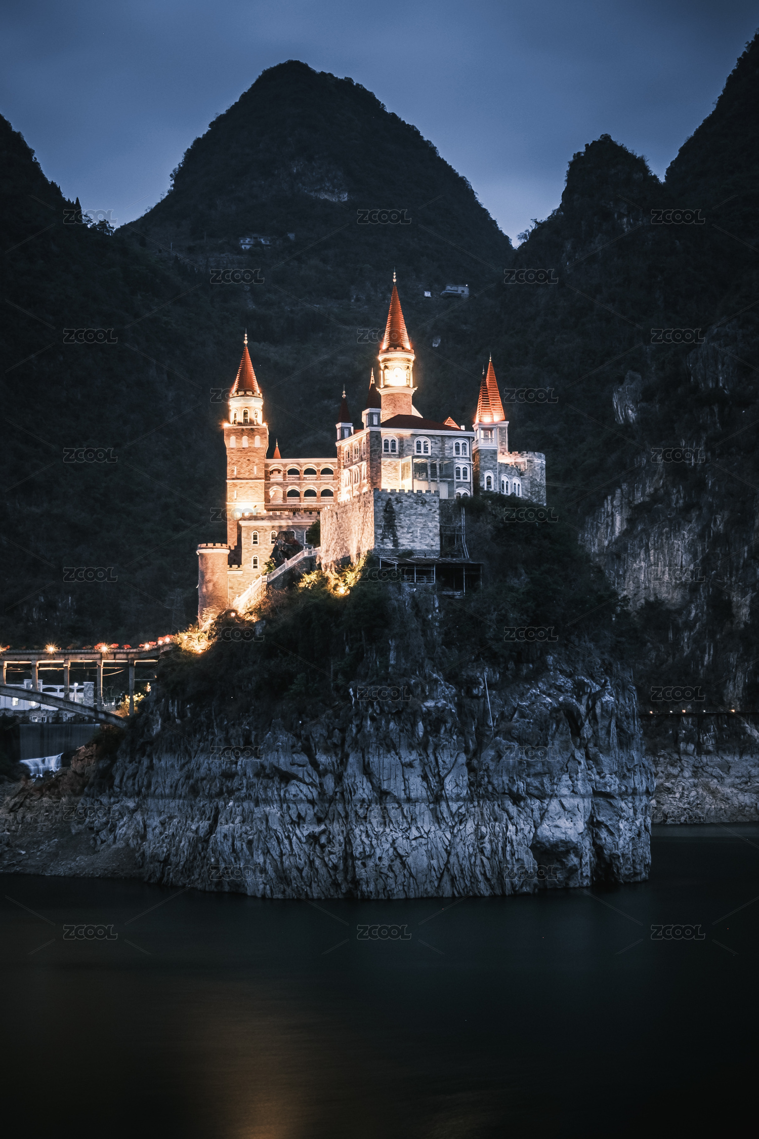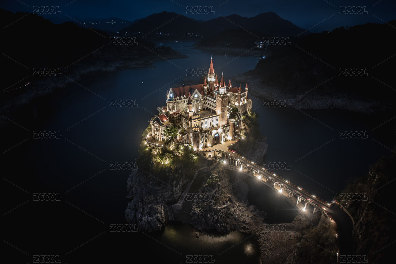 貴州黔西南興義吉隆堡度假村航拍城堡夜景