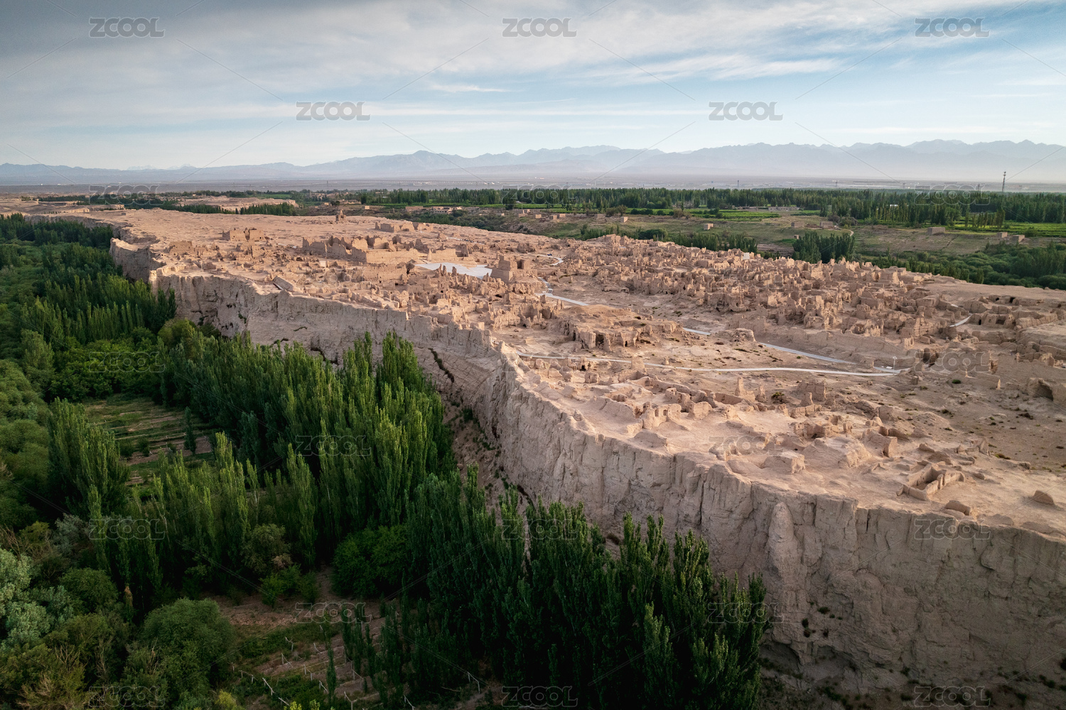 中國新疆吐魯番高昌交河故城航拍古跡遺址