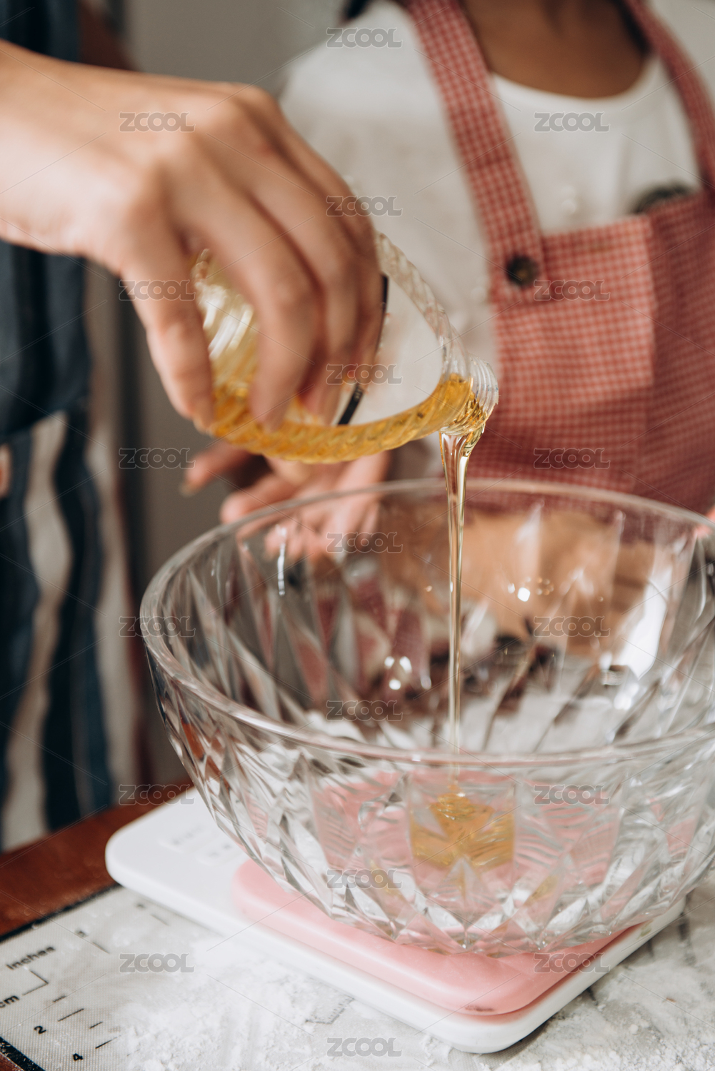 往容器里倒蜂蜜稱重