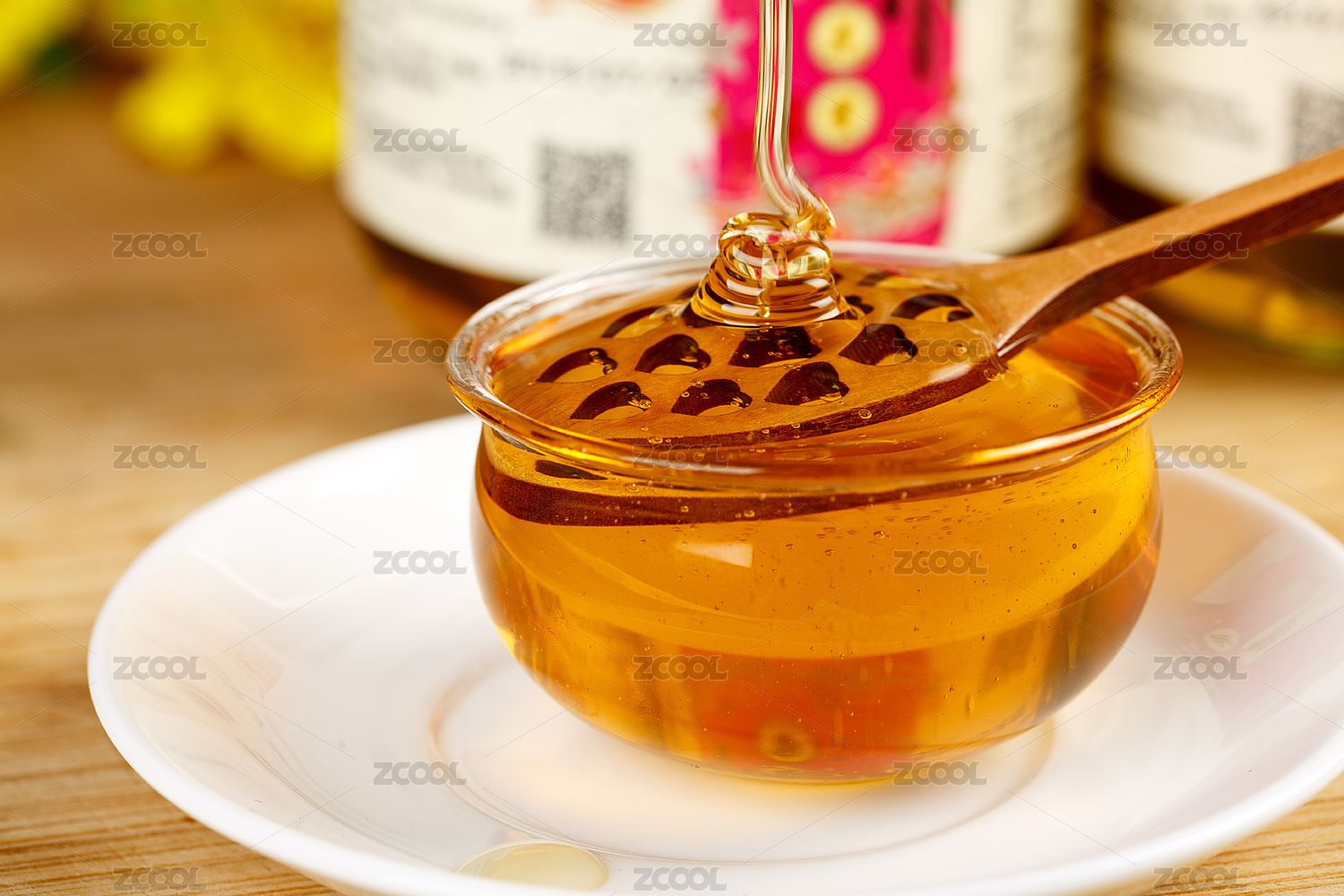 從瓶子里往碟子里倒蜂蜜