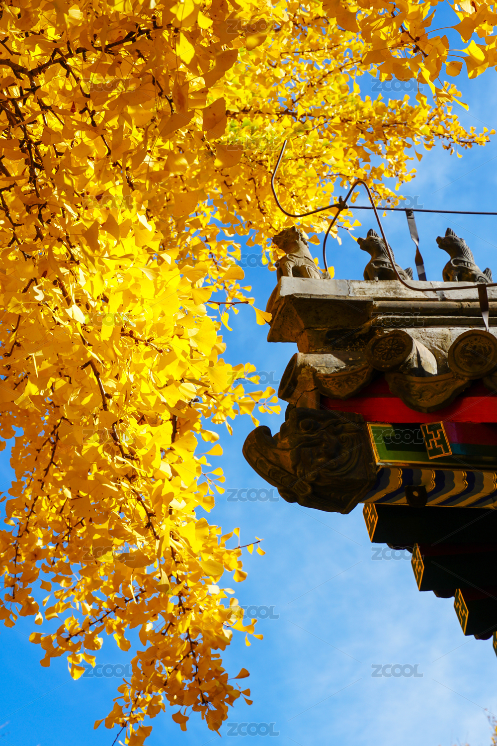 北京市石景山區(qū)承恩寺,寺內(nèi)的古銀杏樹黃了