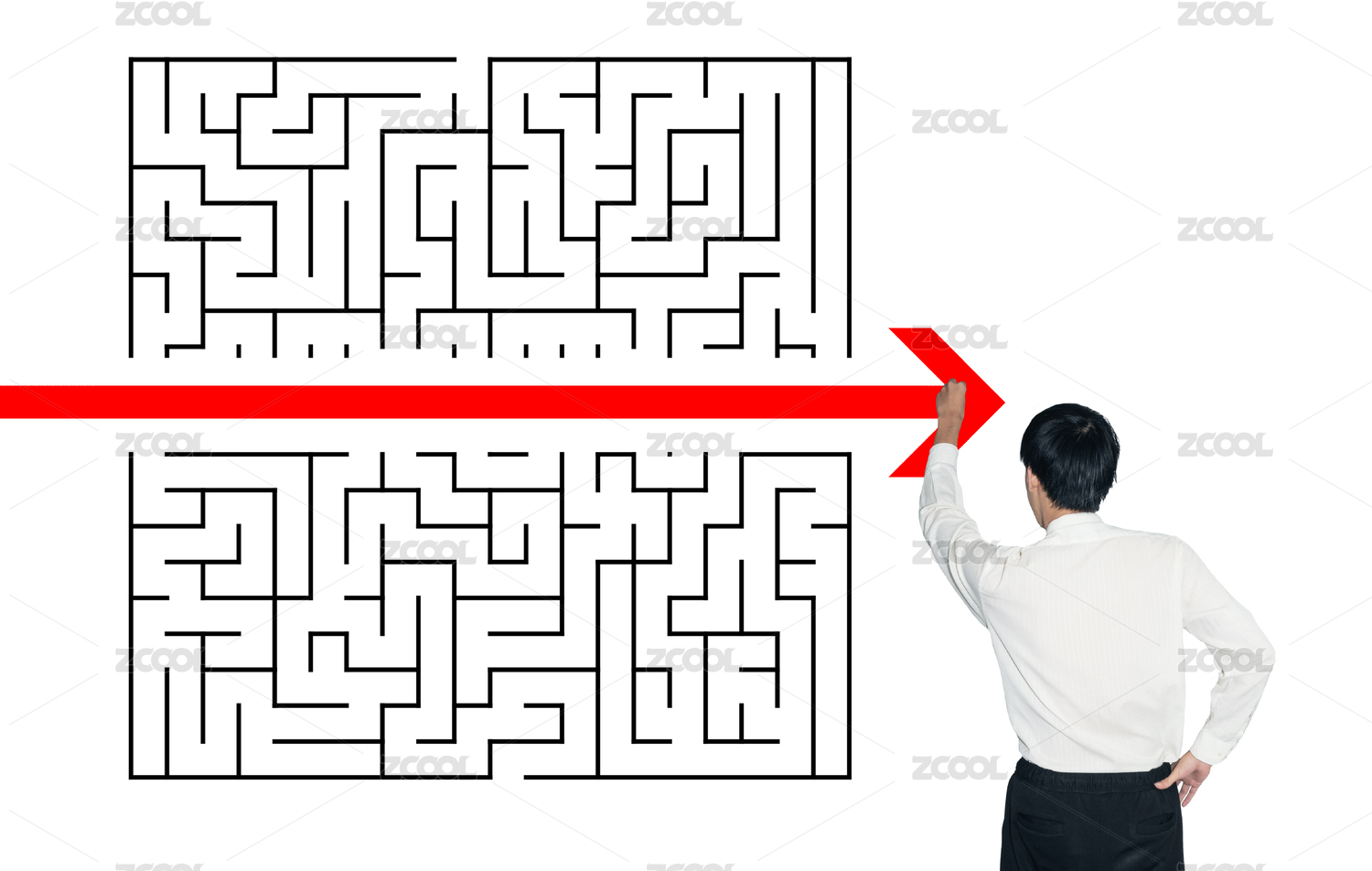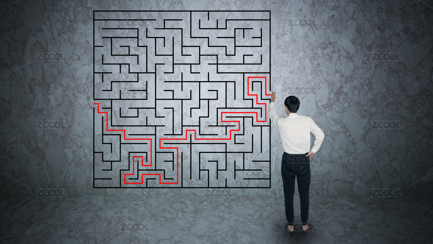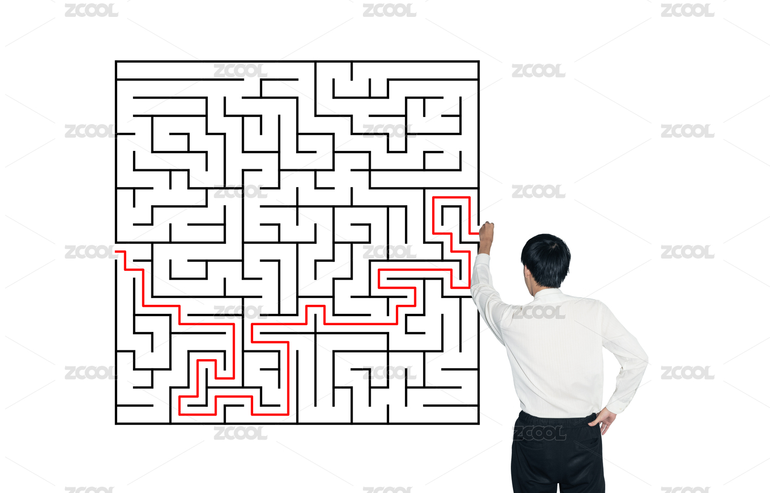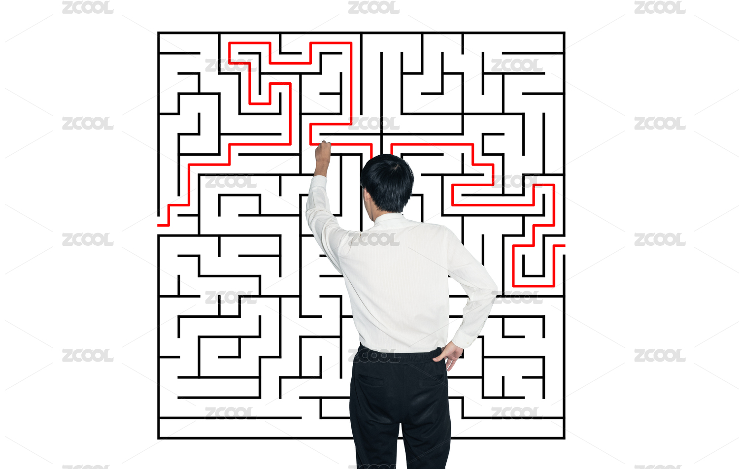 商務(wù)商業(yè)人士突破迷宮尋找答案概念