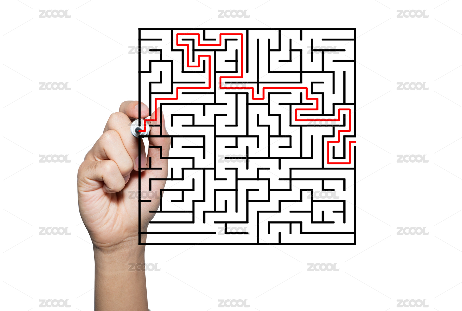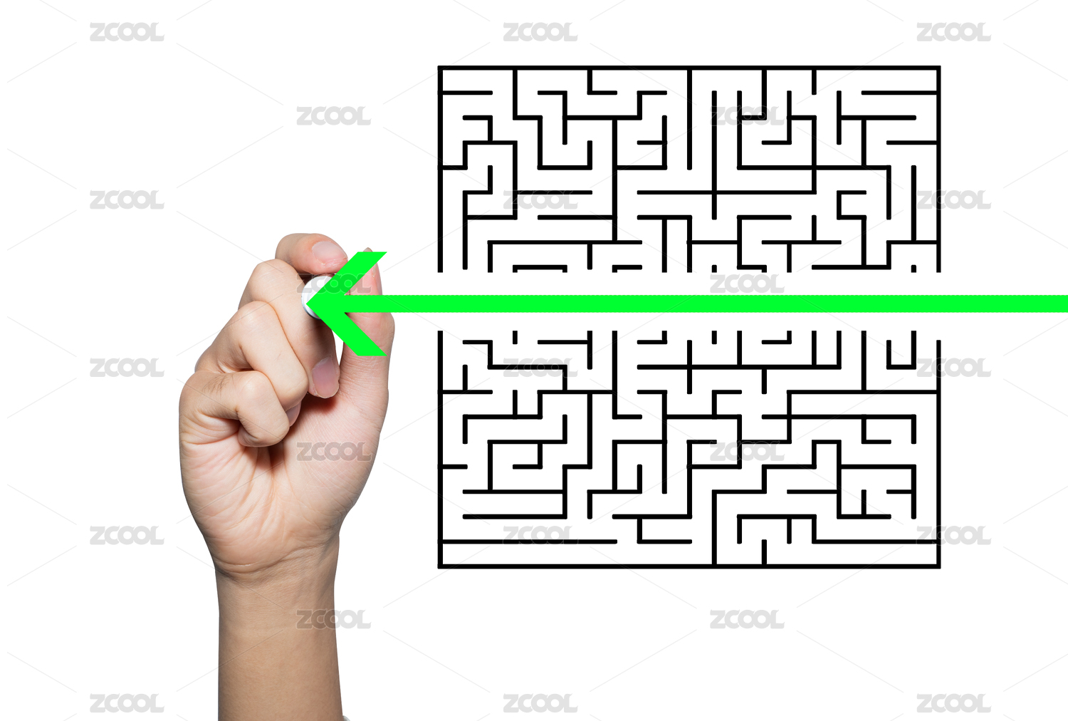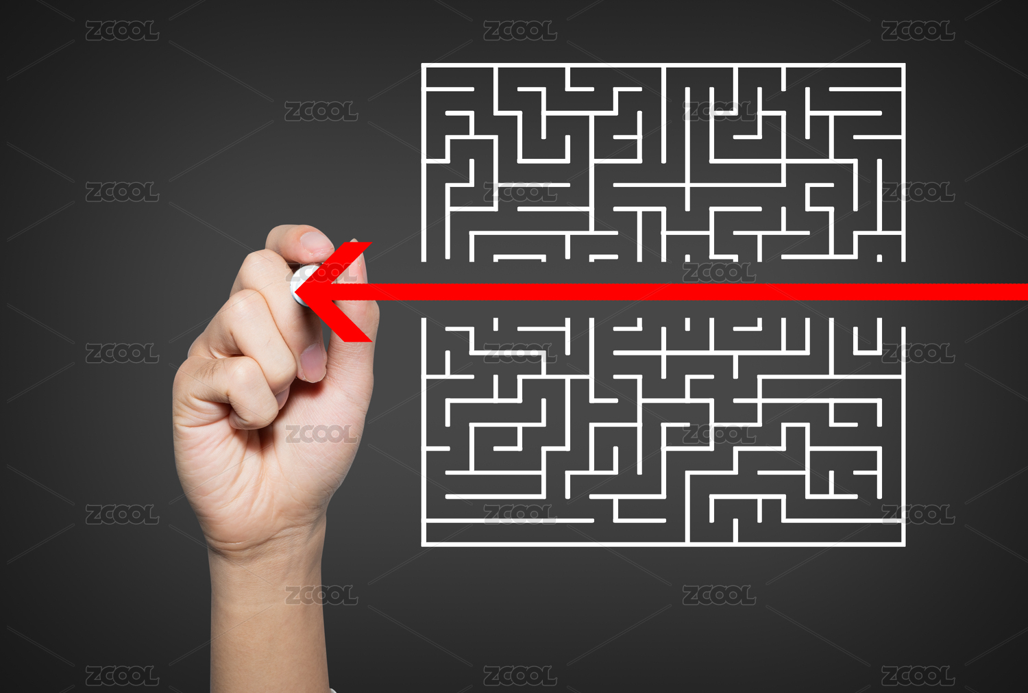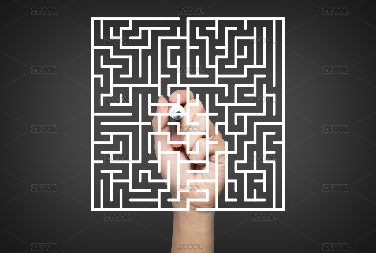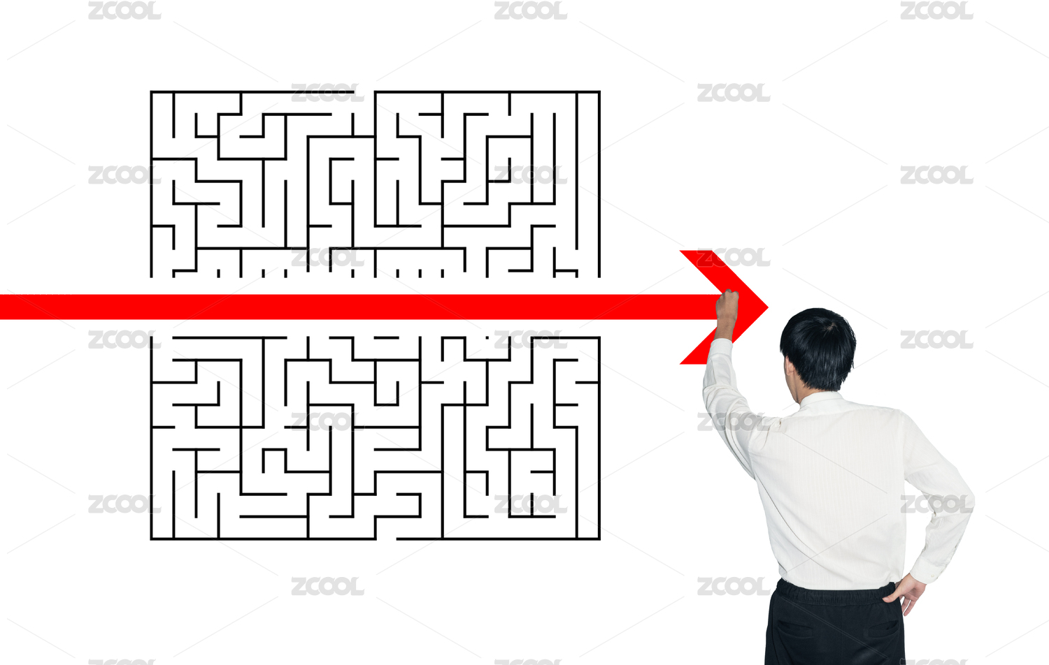 商務(wù)商業(yè)人士突破迷宮尋找答案概念