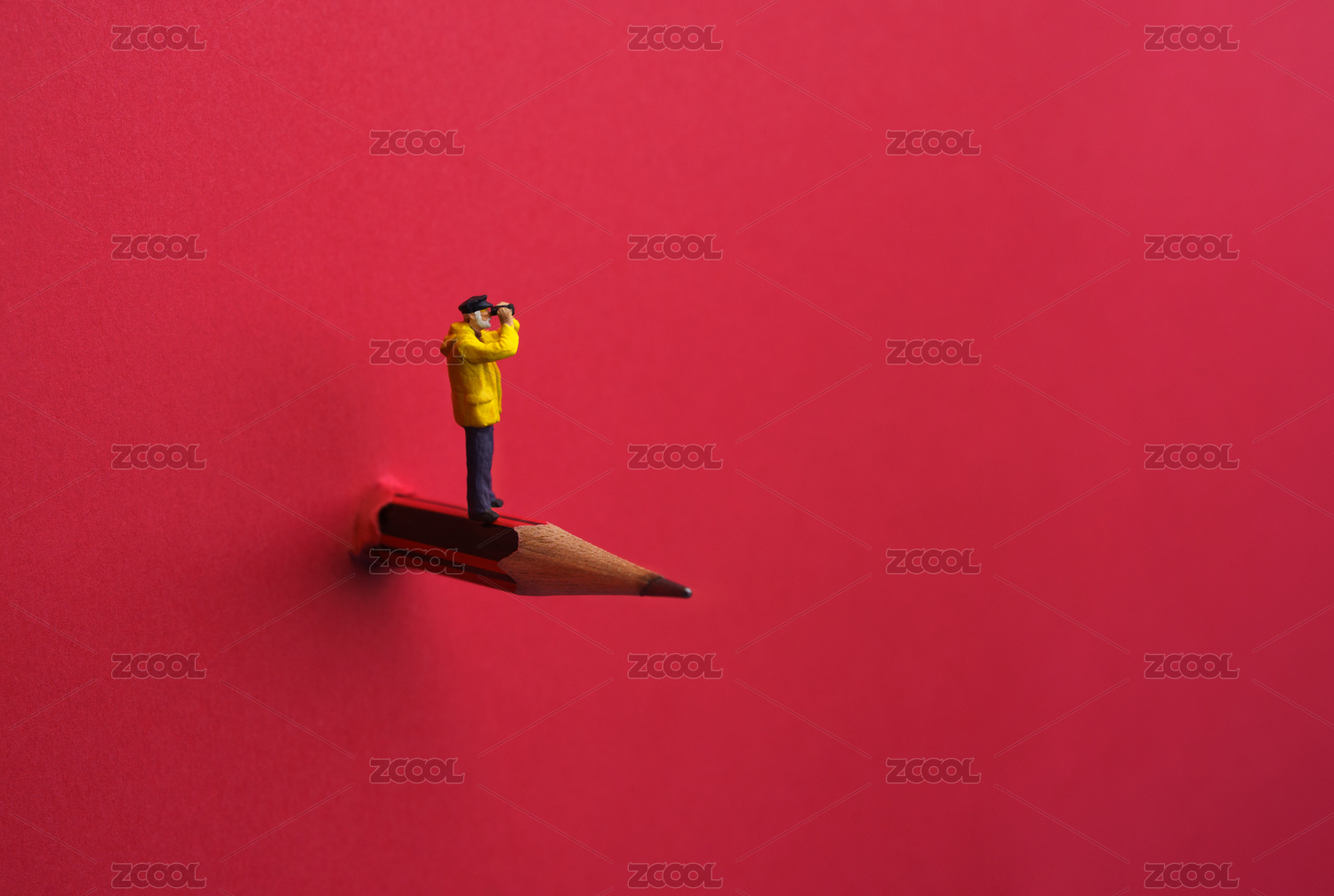 站在穿透彩色卡紙鉛筆上拿望遠(yuǎn)鏡看這遠(yuǎn)方的