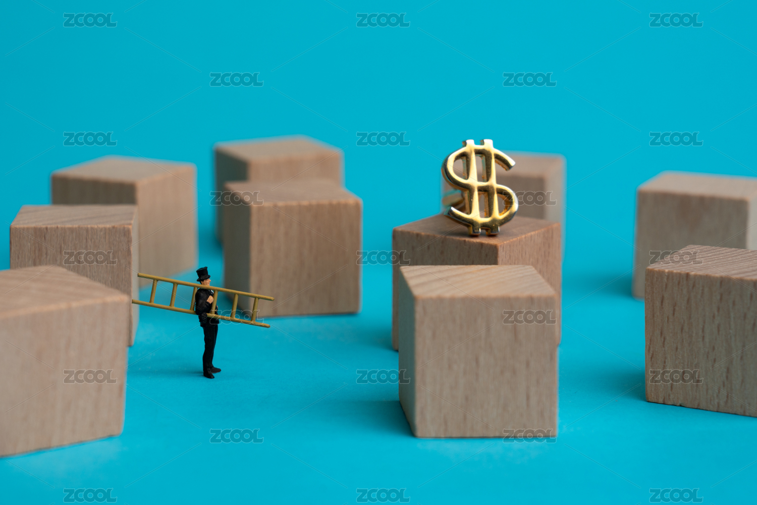 扛著梯子在木塊之前尋找資金微縮創(chuàng)意