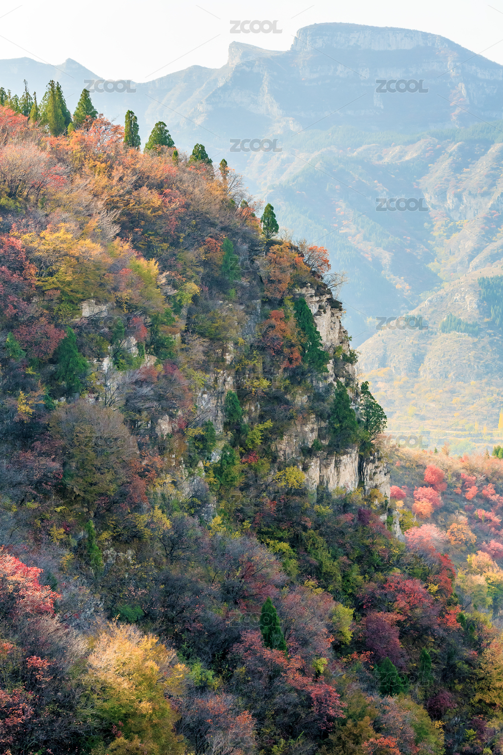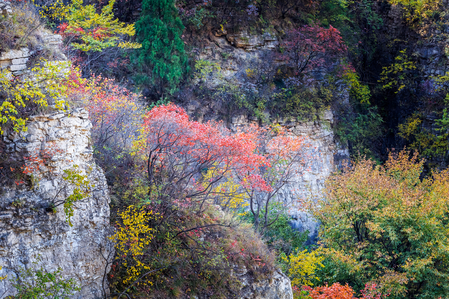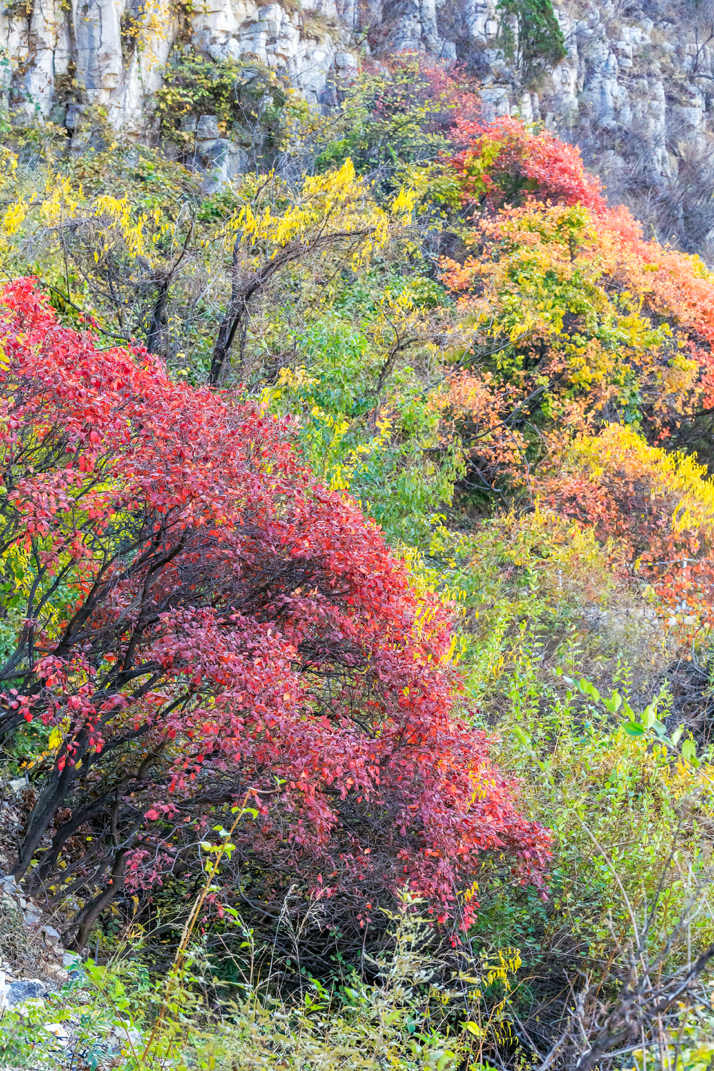 懸崖上的彩色灌木林,中國山東省青州市天賜山