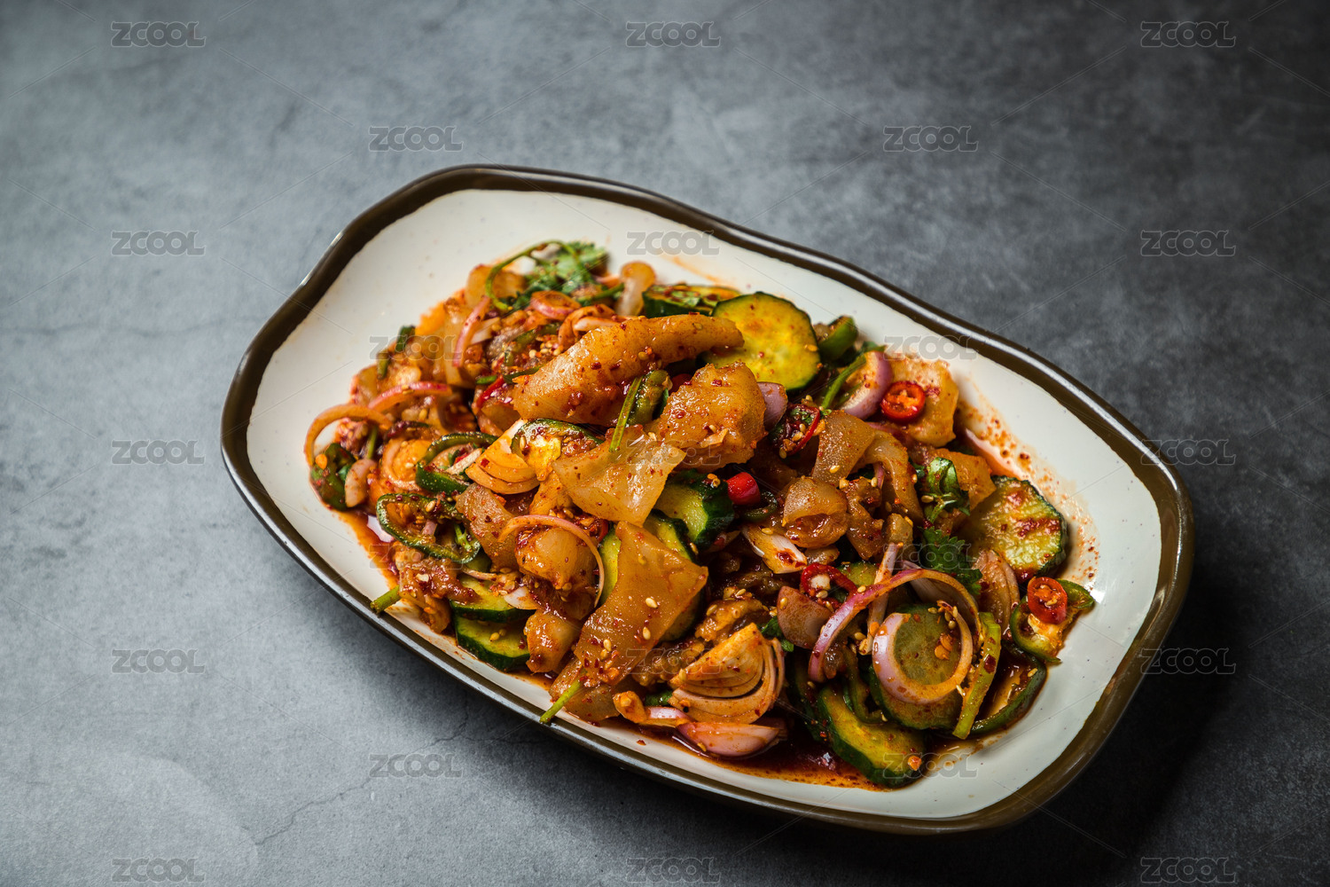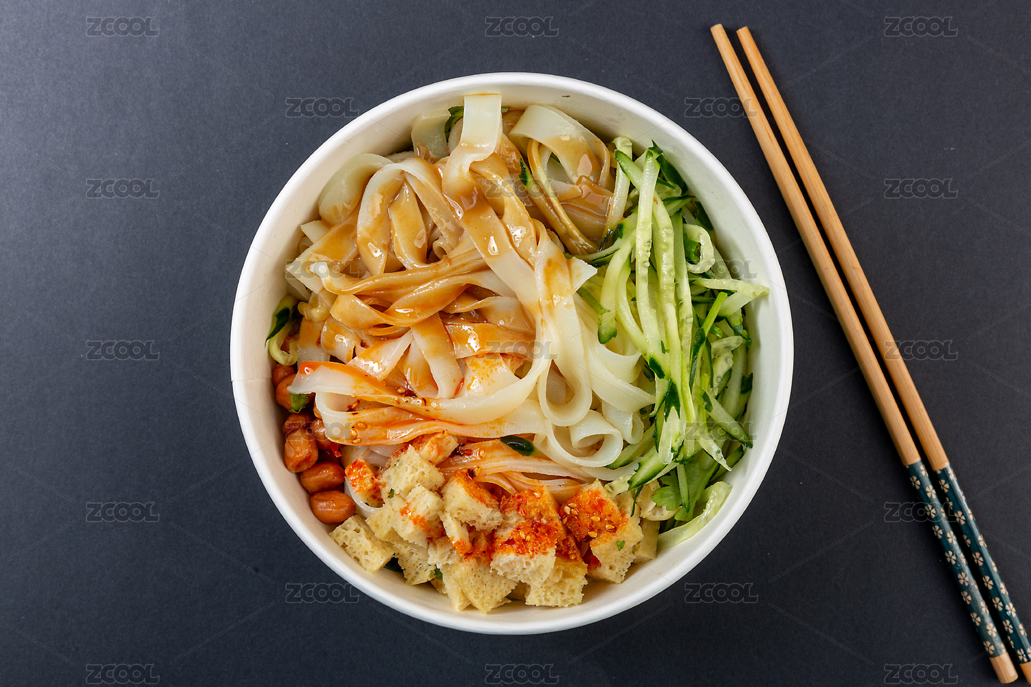 俯拍一份涼拌涼皮