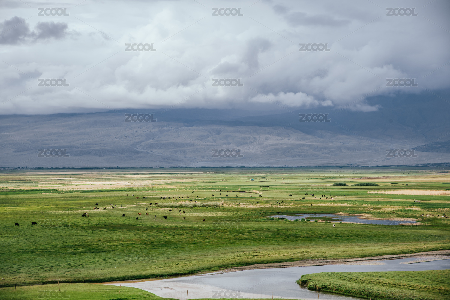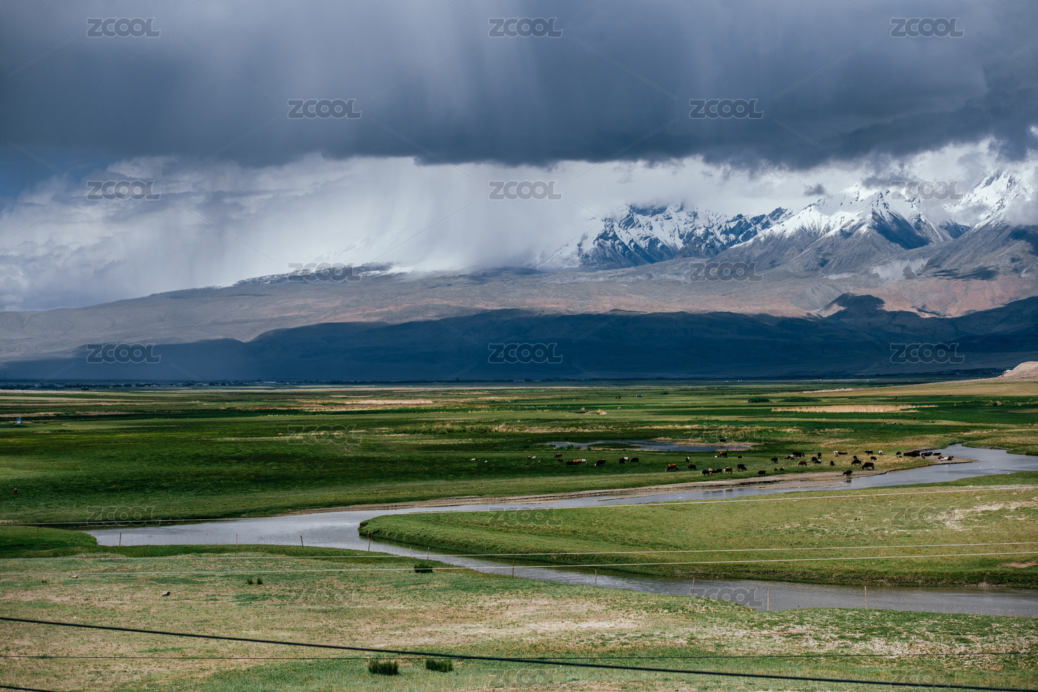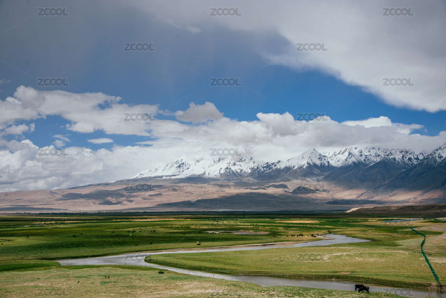 中國(guó)新疆中巴公路慕士塔格峰下蘇巴什草原秋季