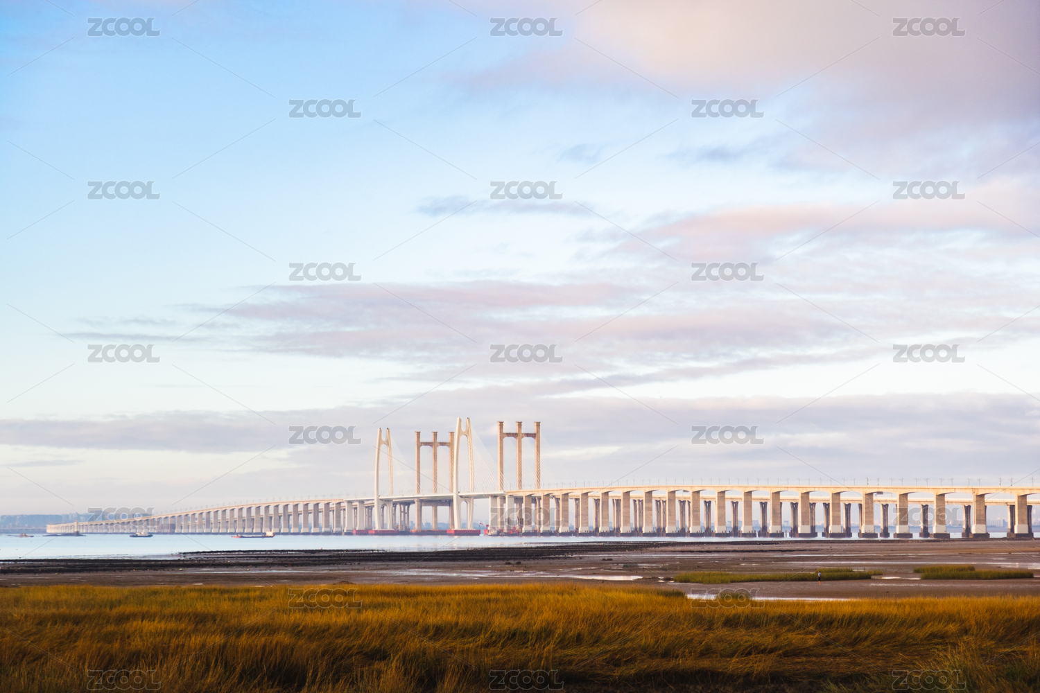 中國泉州灣跨海大橋和灘涂風光