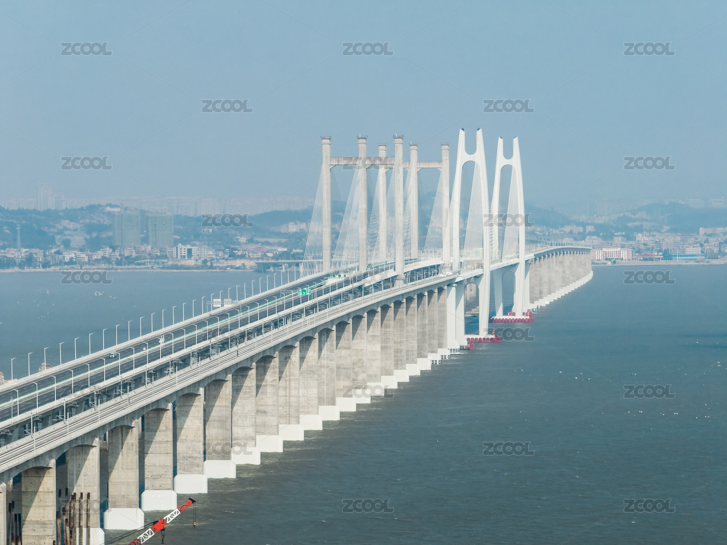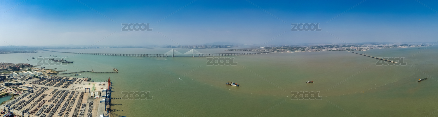 泉州灣海域和建設(shè)中的大橋