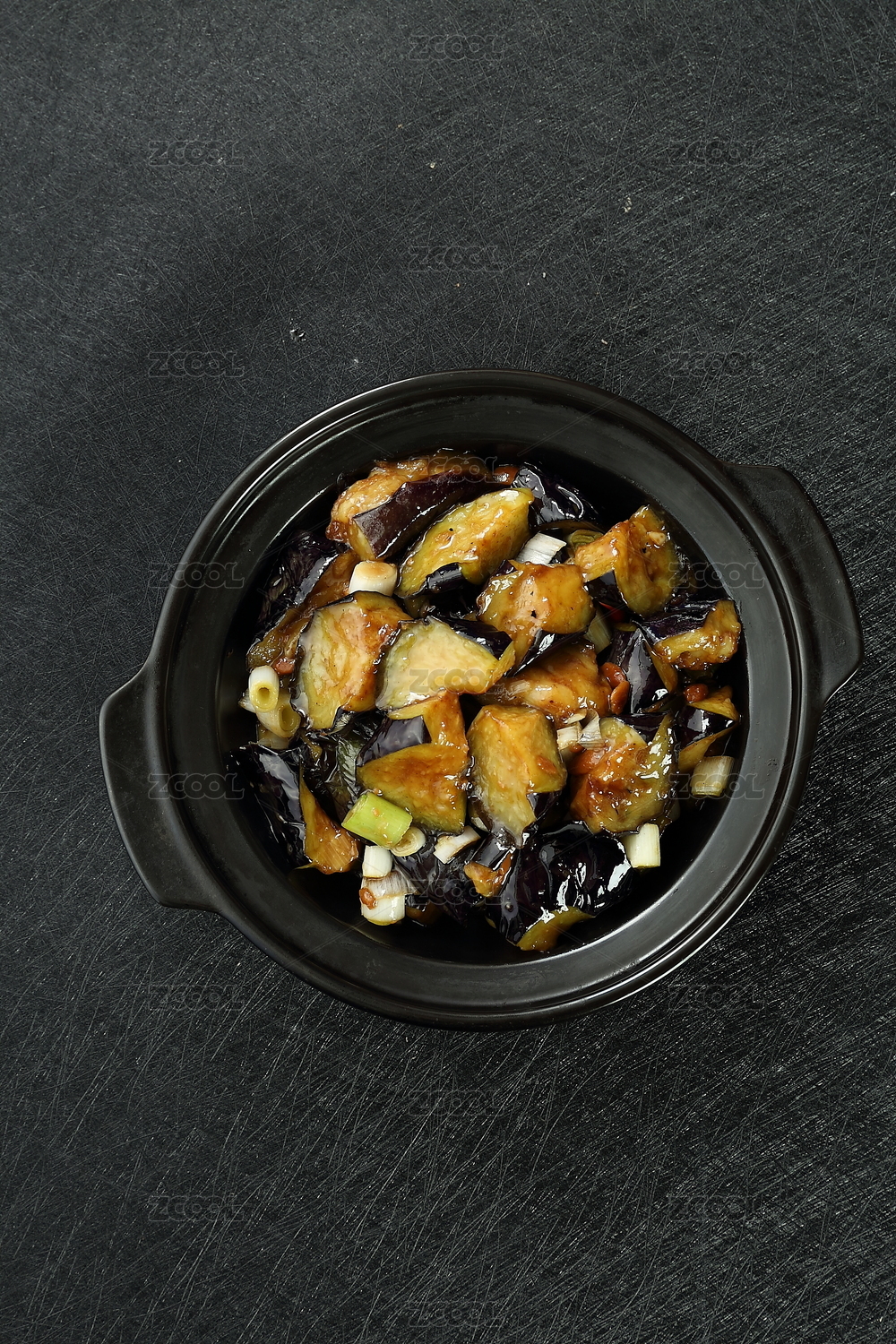 黑色碗里的肉沫茄子煲