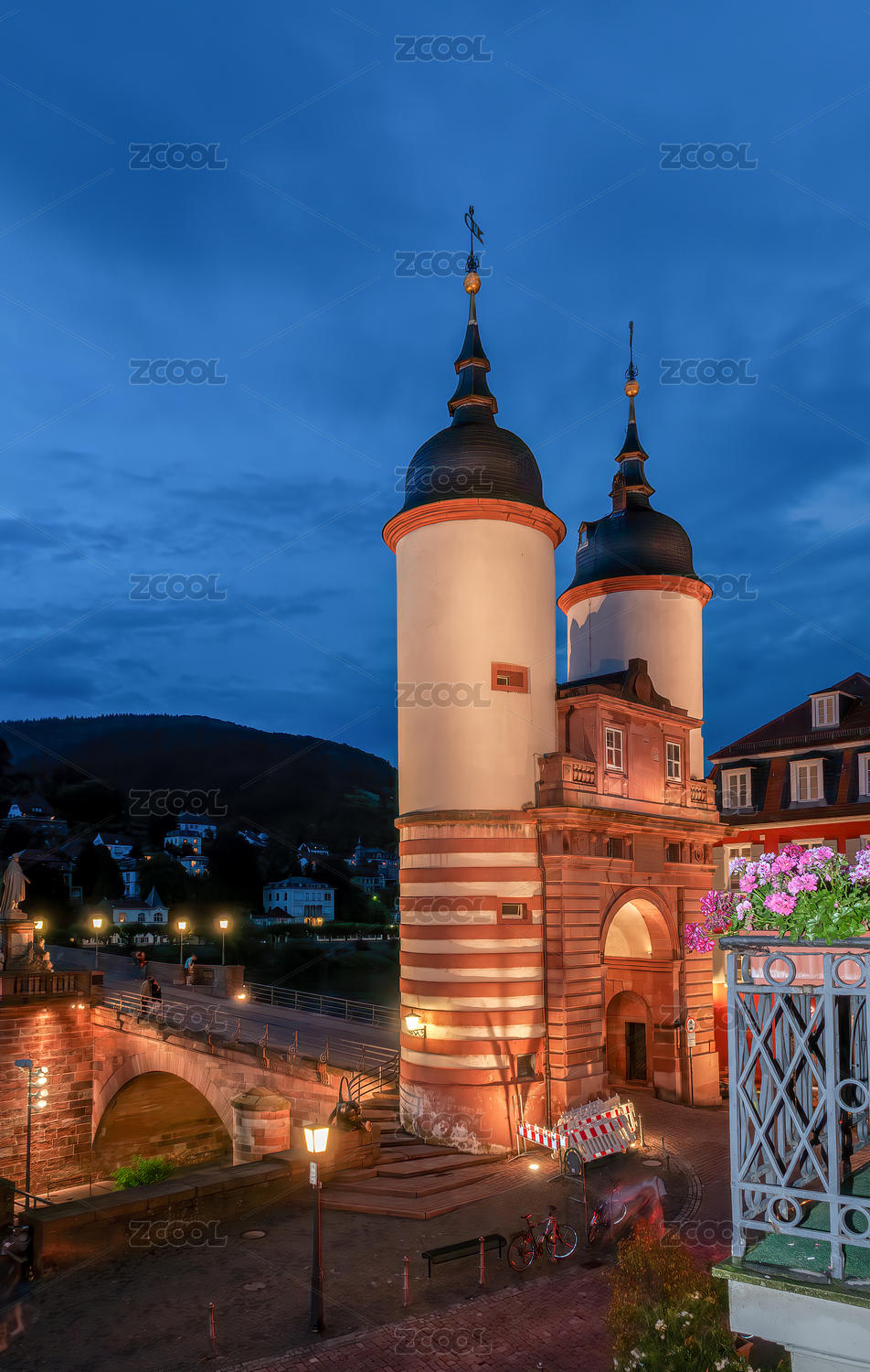 夕陽(yáng)余暉中的德國(guó)海德堡老城區(qū)的古典建筑