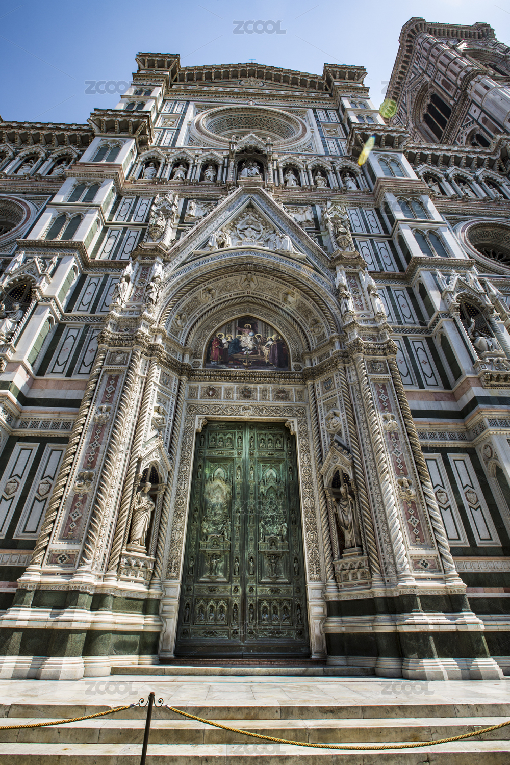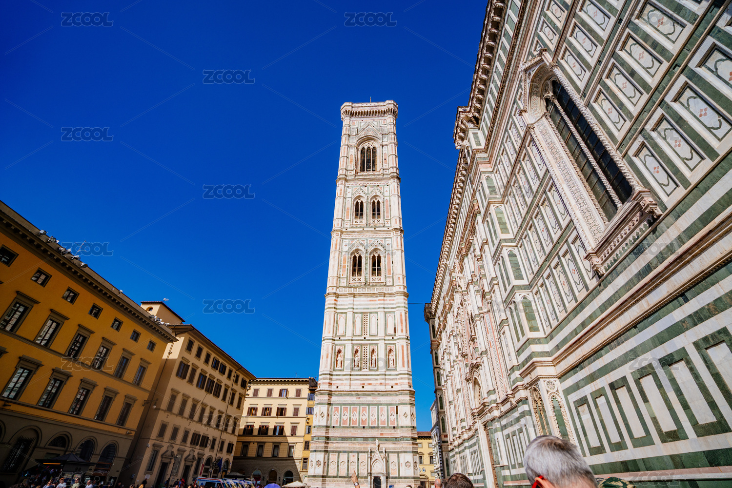 歐洲意大利佛羅倫薩圣母百花大教堂樓塔正面