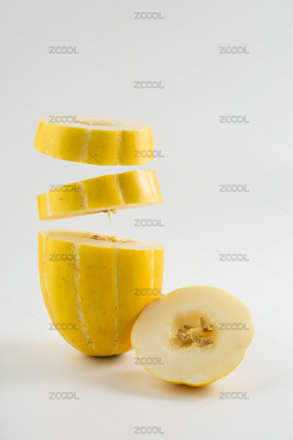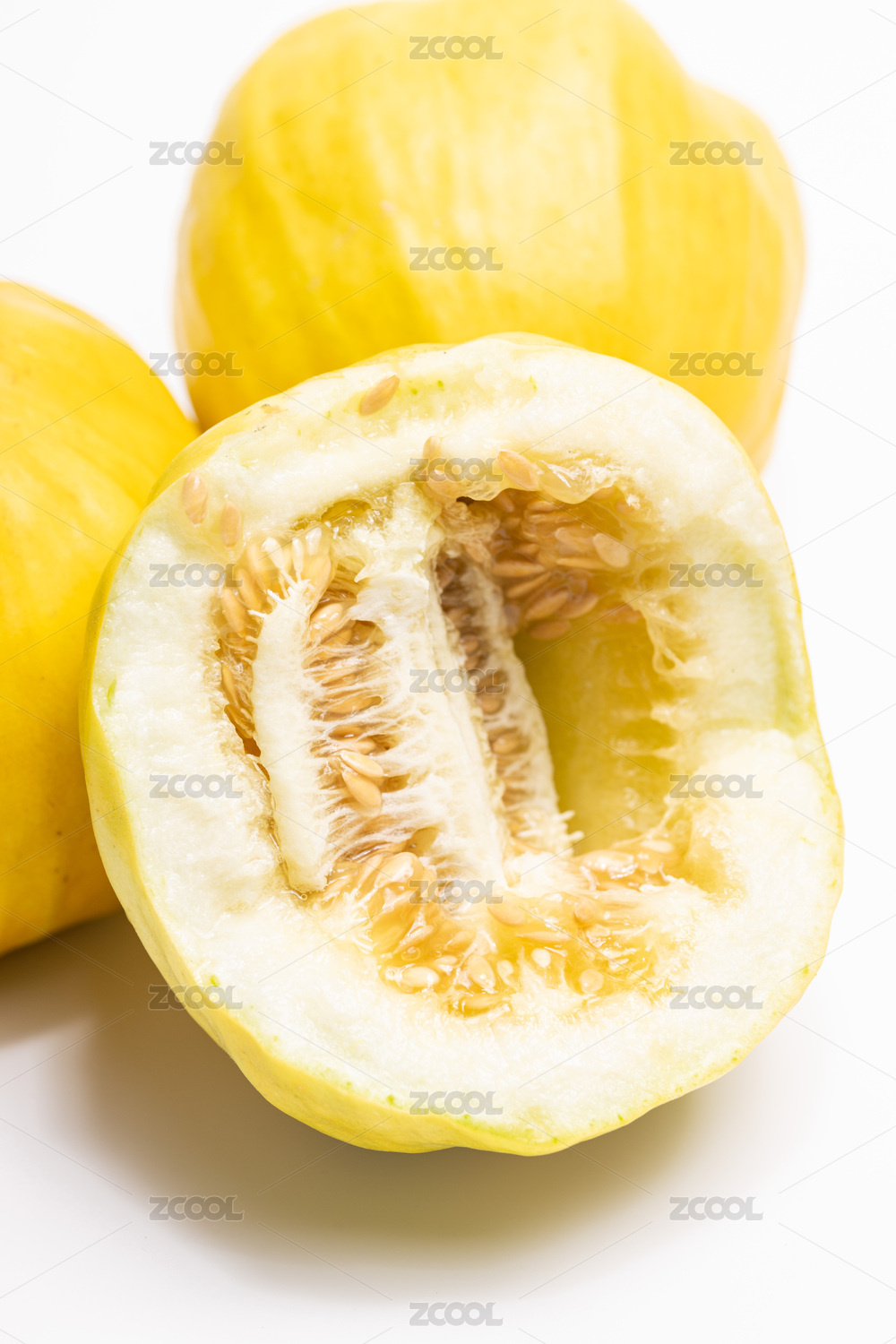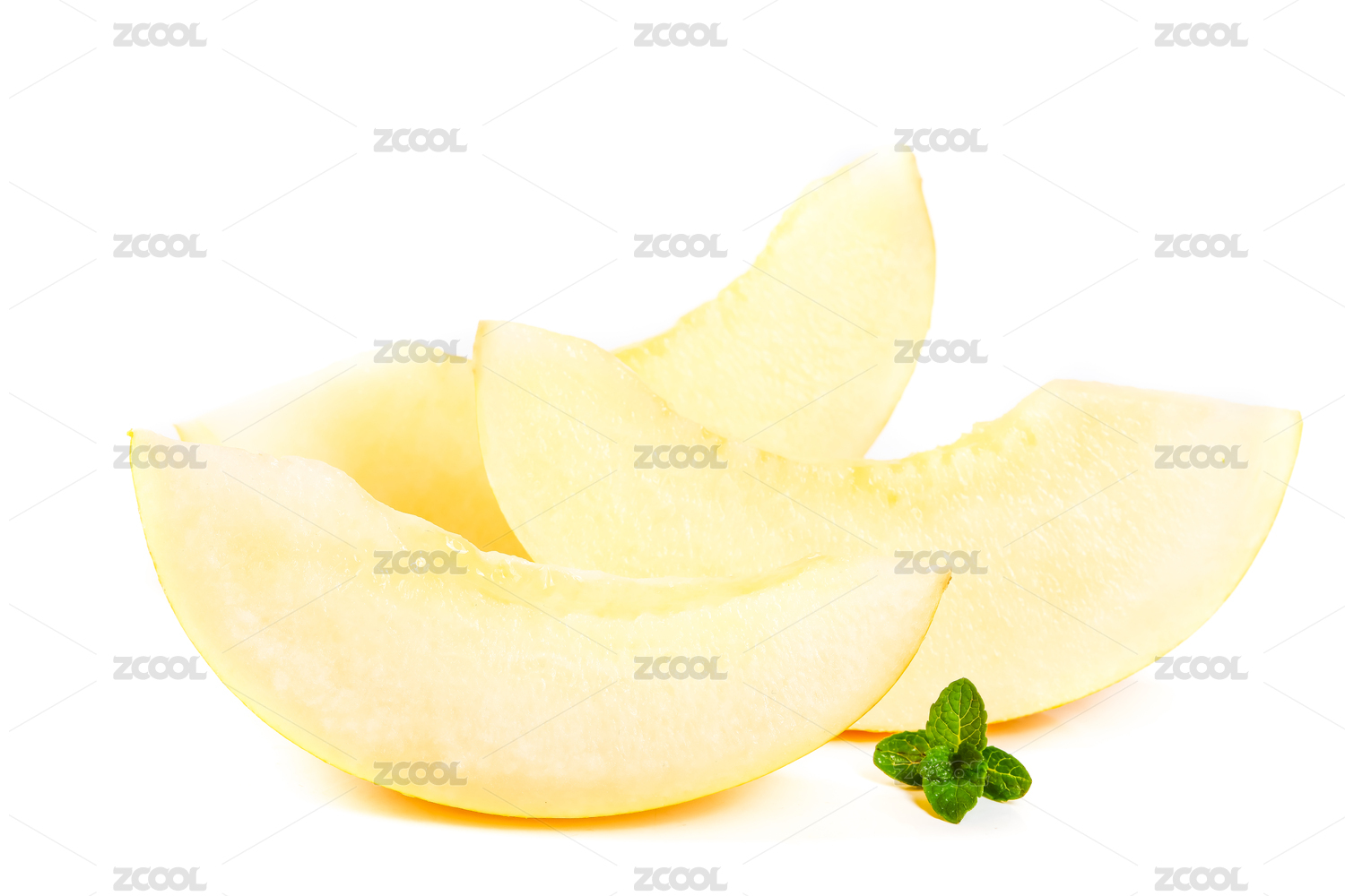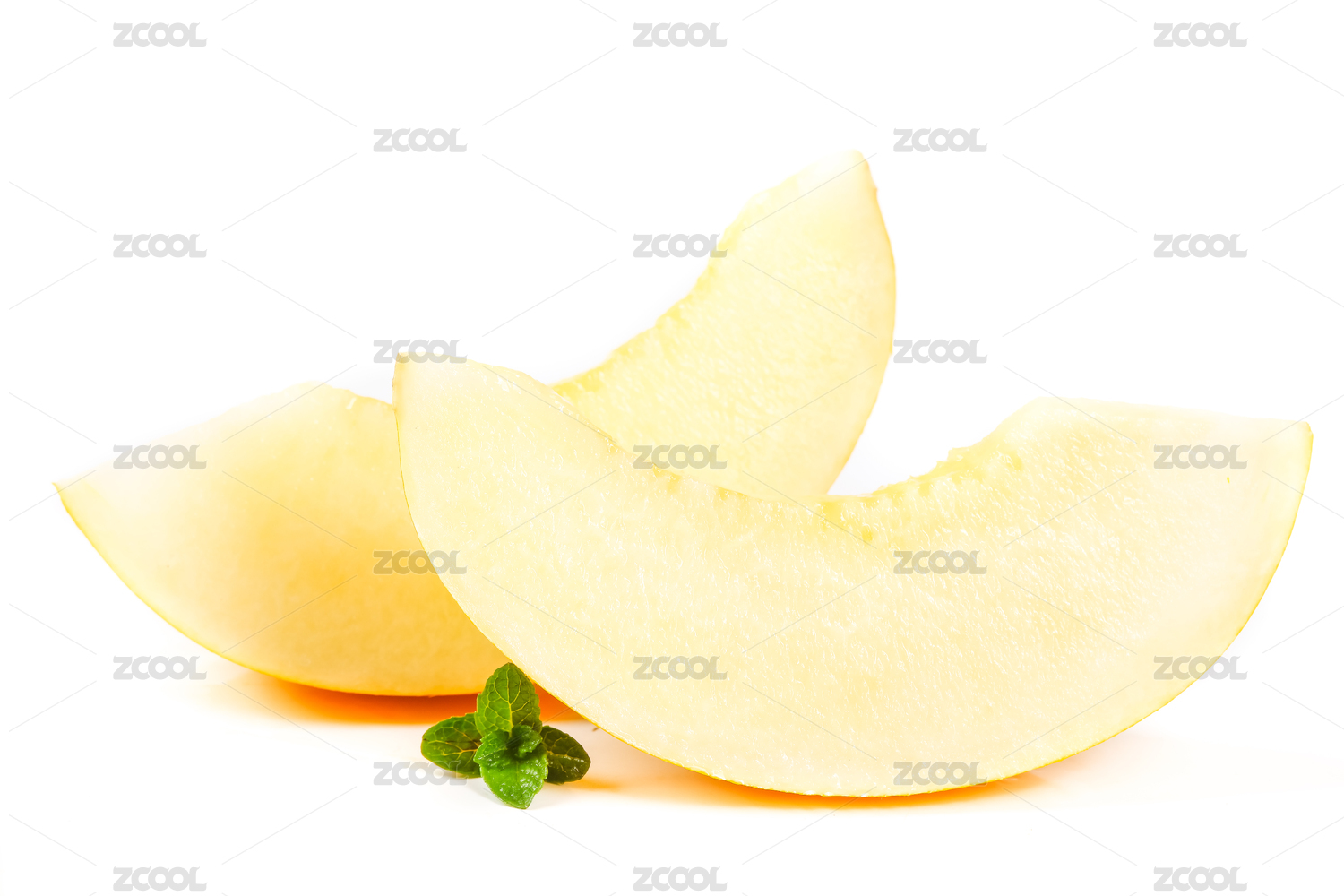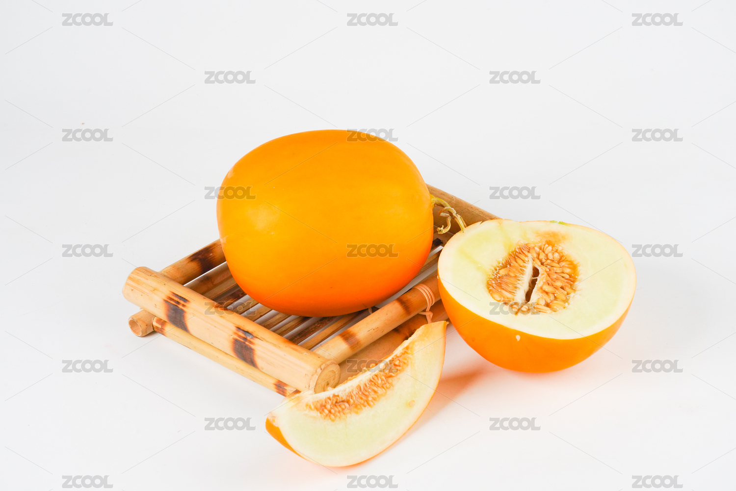 放在白色背景大理石盤(pán)子上切開(kāi)的黃金甜蜜瓜