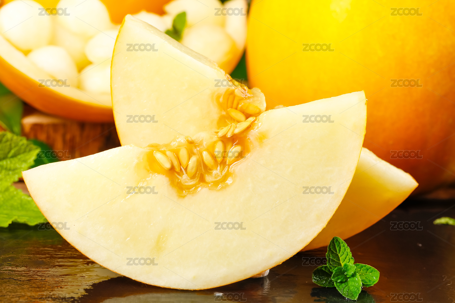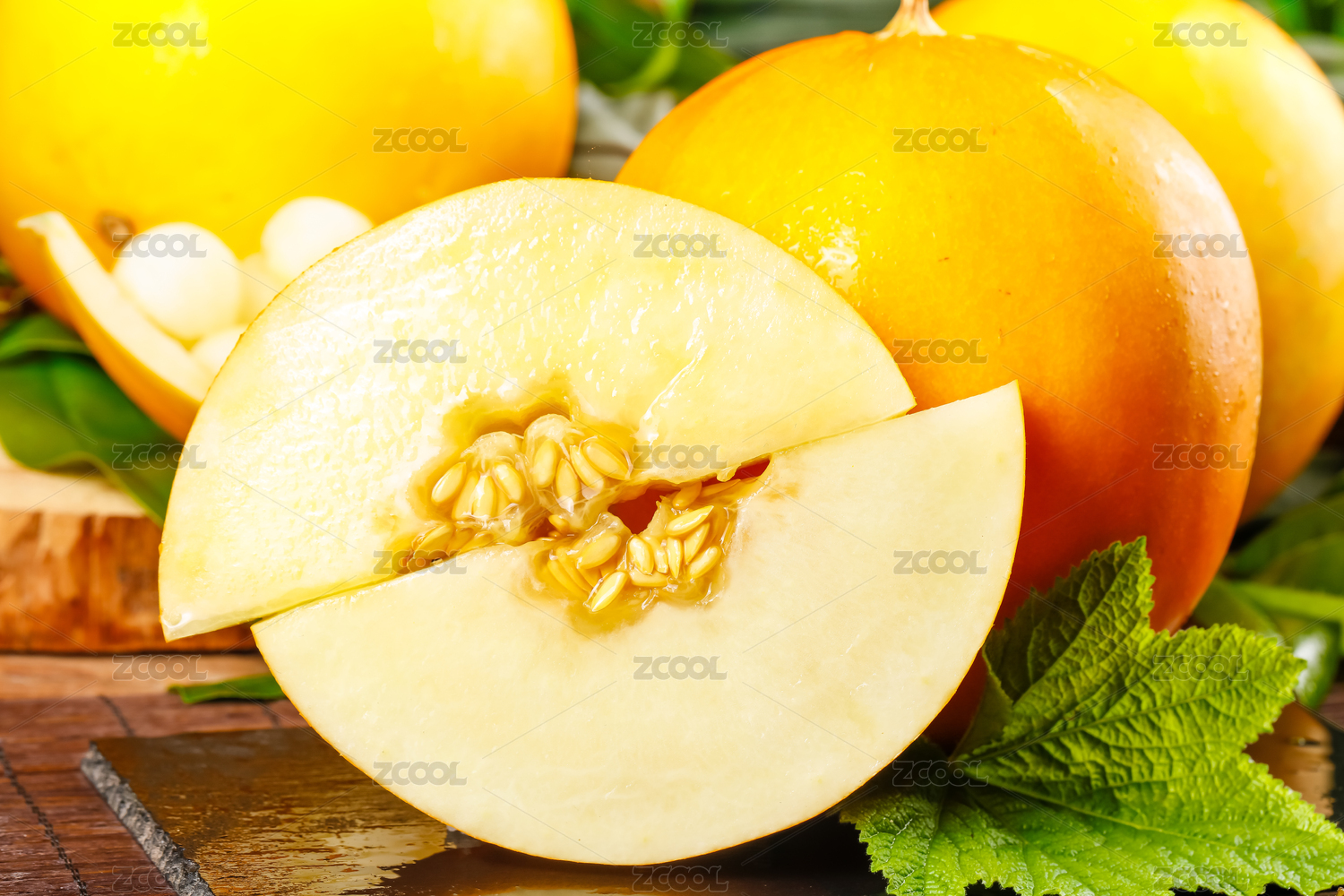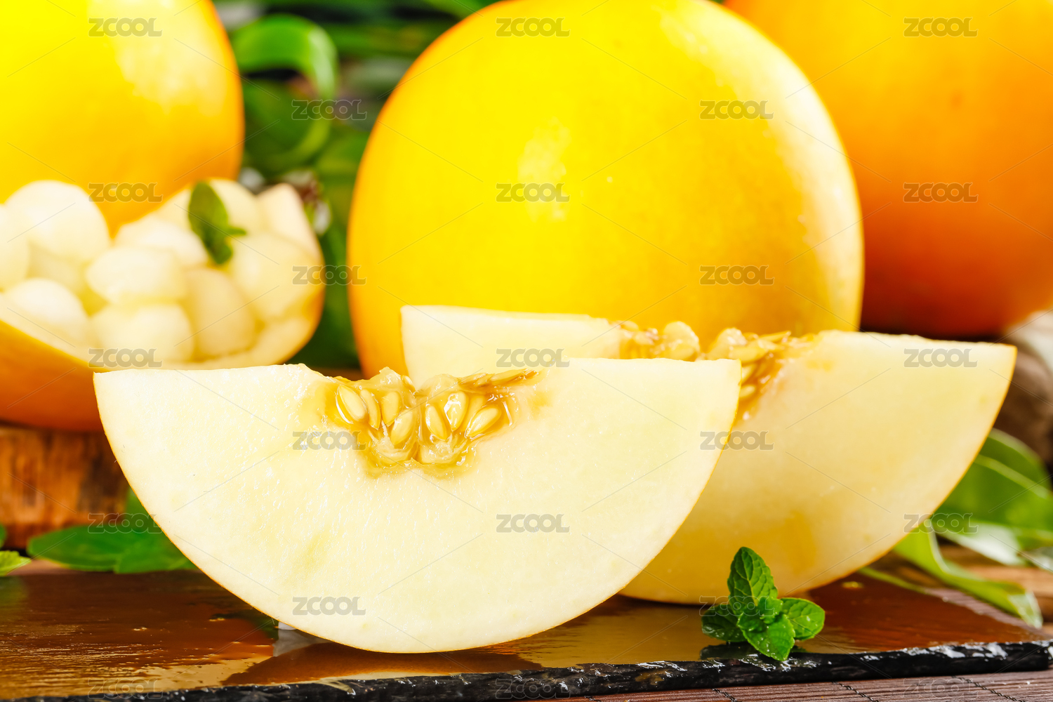 放在大理石背景托盤(pán)里切開(kāi)的黃河蜜瓜