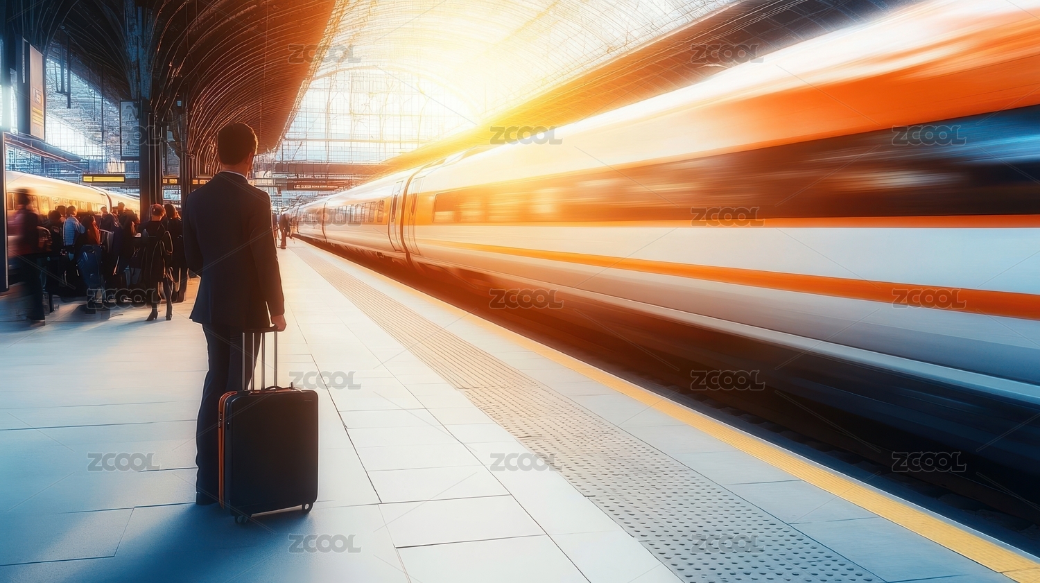 火車站臺旅客與疾馳列車