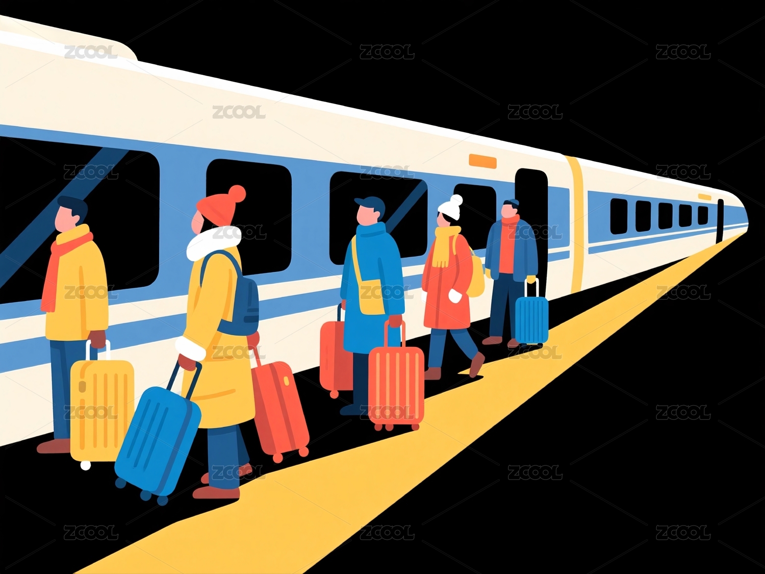 復(fù)古火車站內(nèi)的旅客與列車