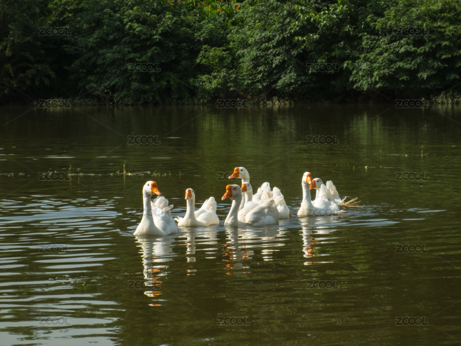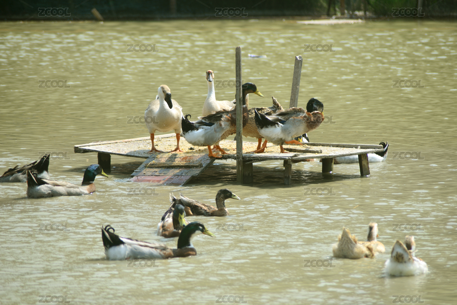 鄉(xiāng)村池塘 農(nóng)家飼養(yǎng)的鴨子和家鵝