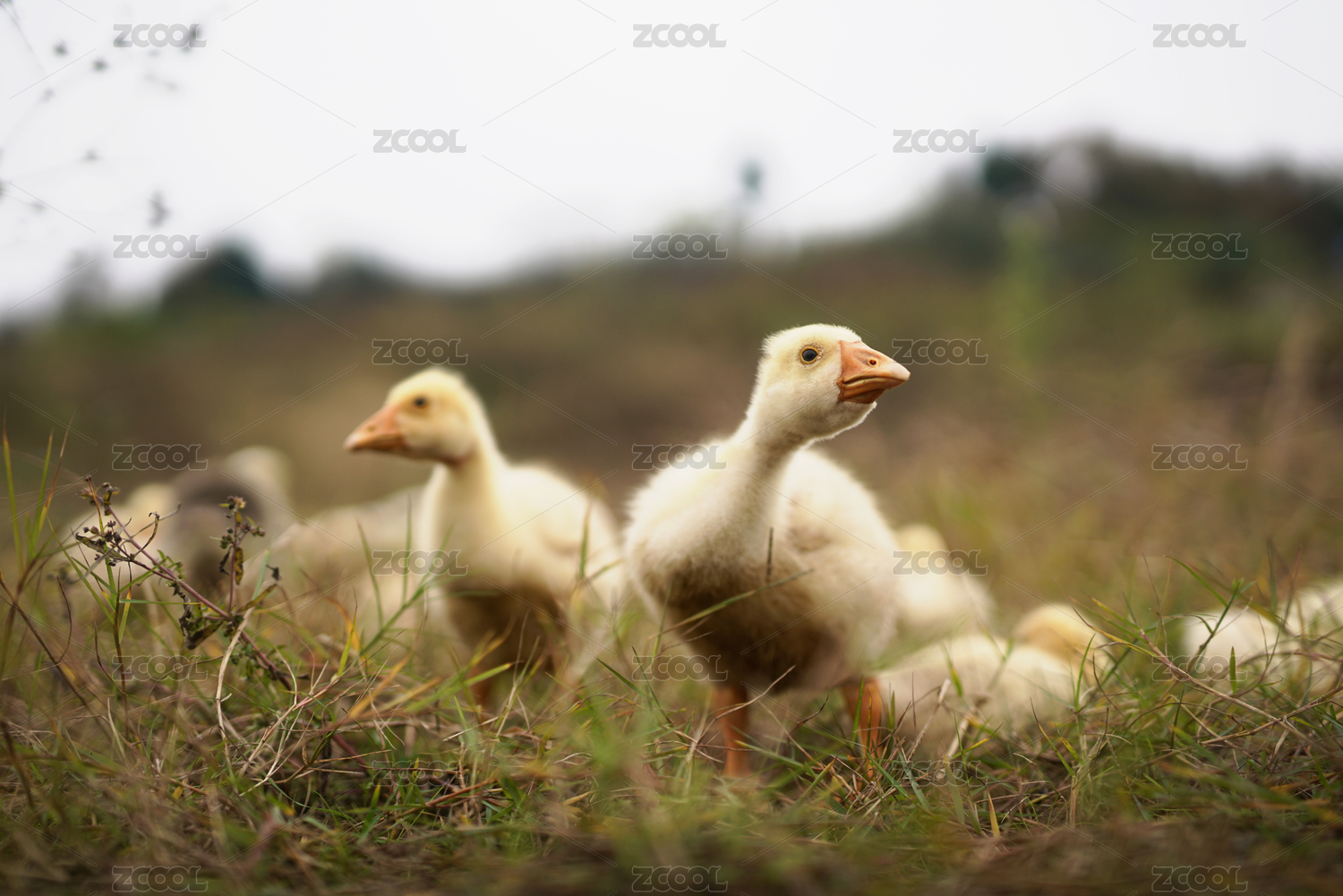 農(nóng)村草坪上的家鵝雛鳥