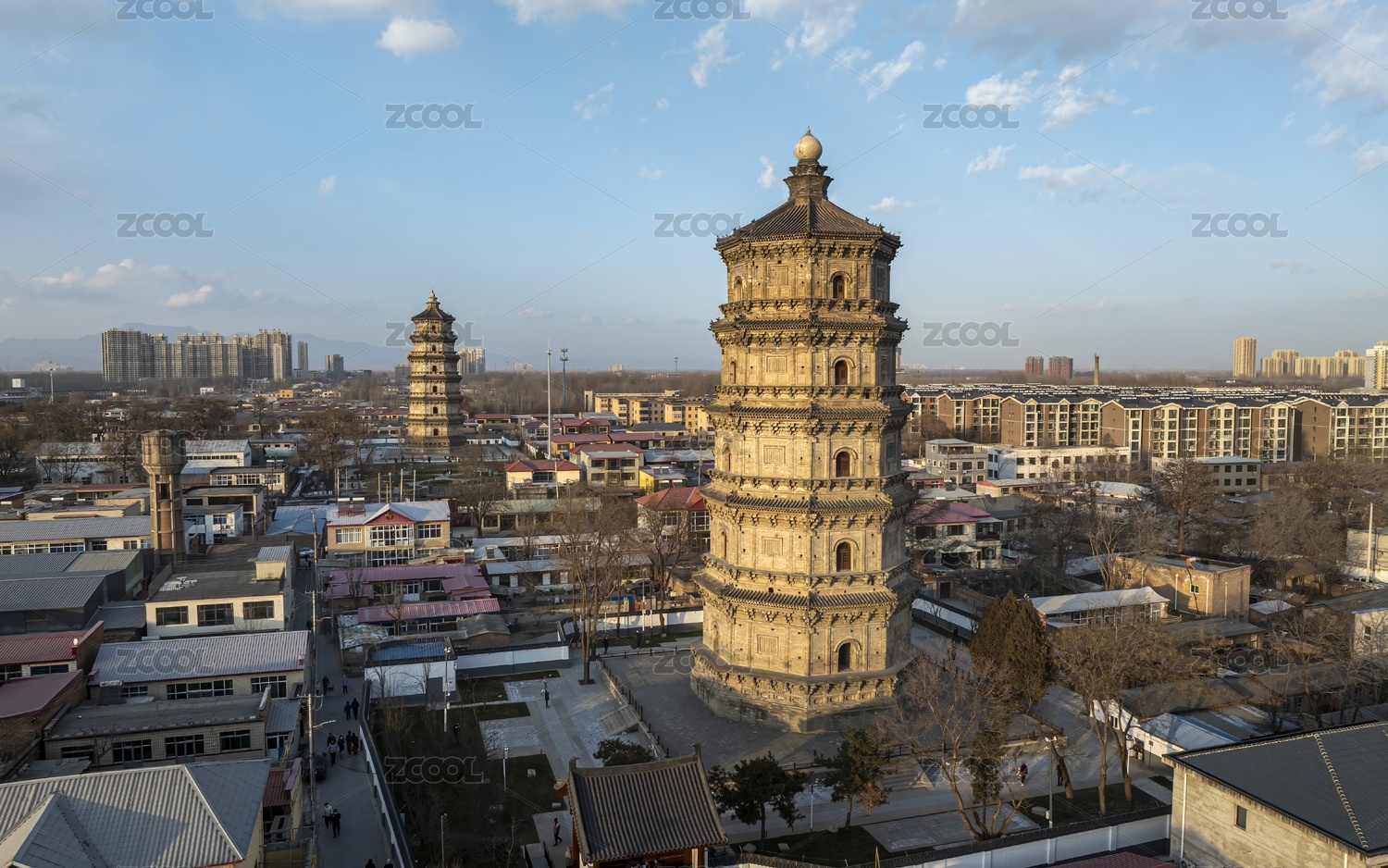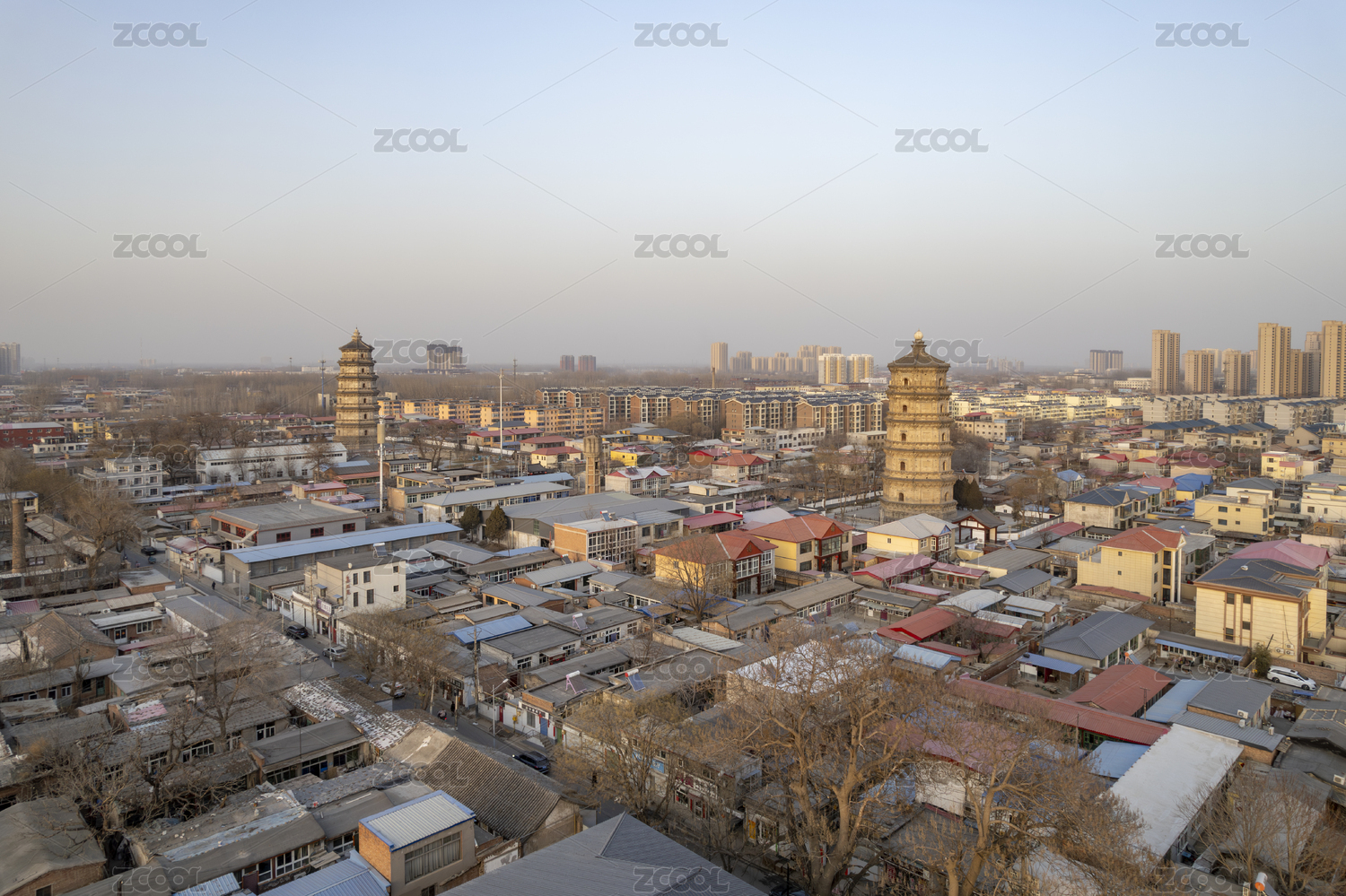 城市蘇州姑蘇區(qū)北寺塔航拍,清晨黎明日出