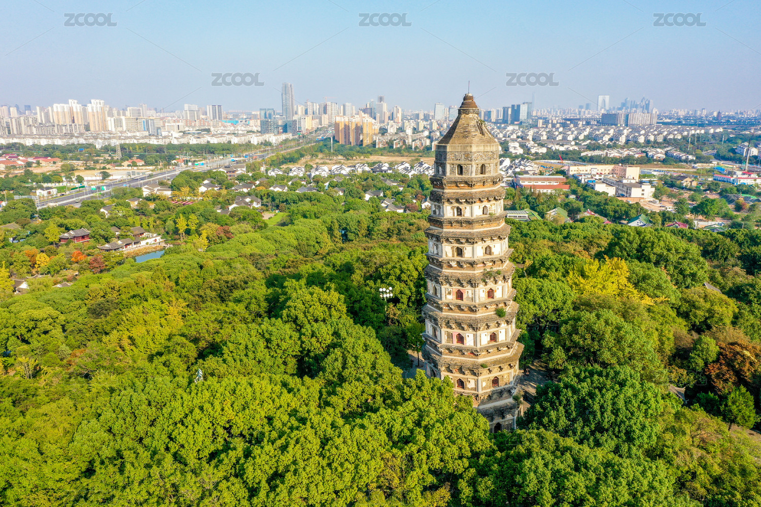 航拍中國(guó)江蘇蘇州虎丘山風(fēng)景名勝區(qū)云巖寺塔虎丘塔