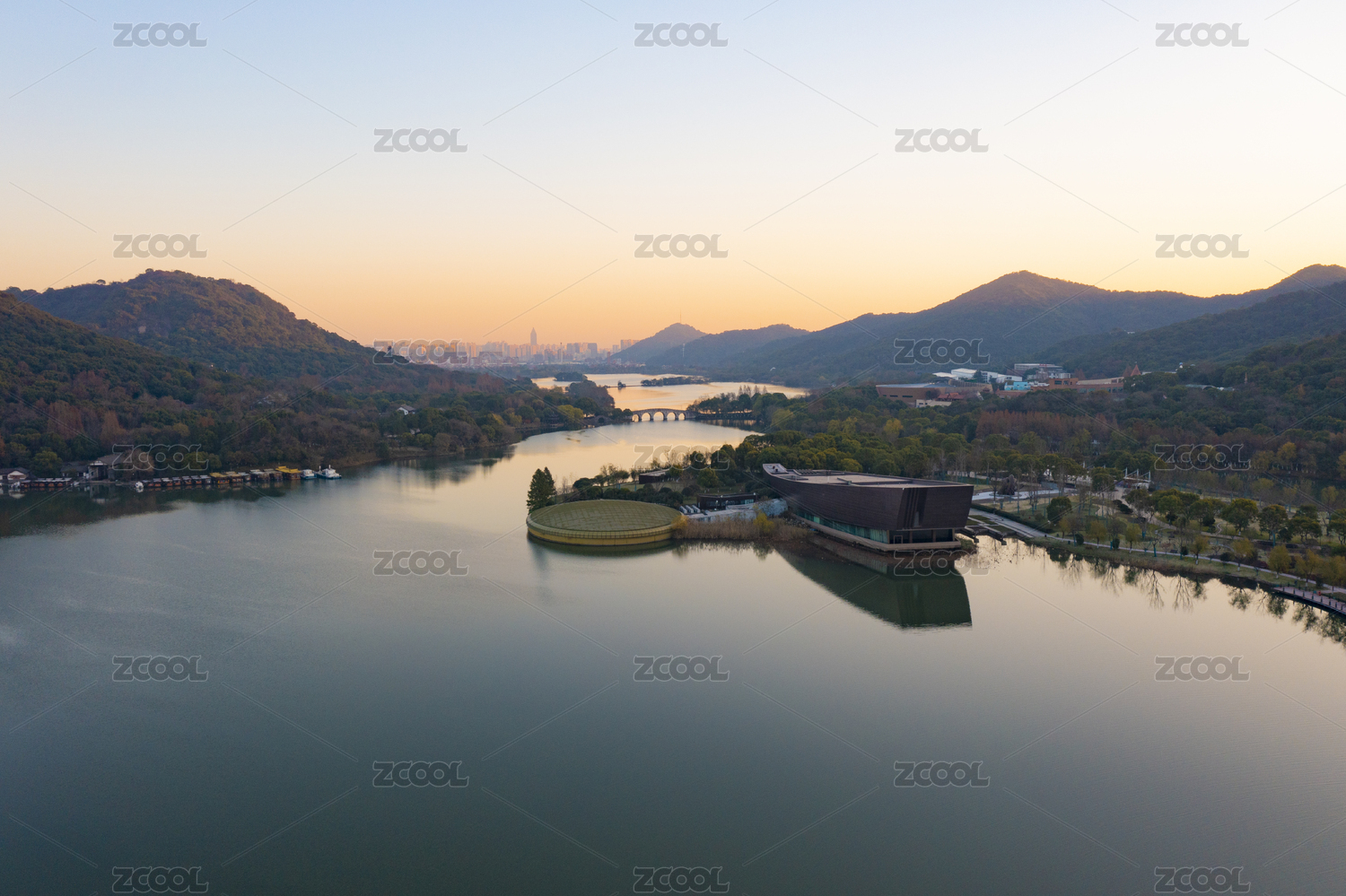 浙江省杭州湘湖跨湖橋遺址博物館晨曦