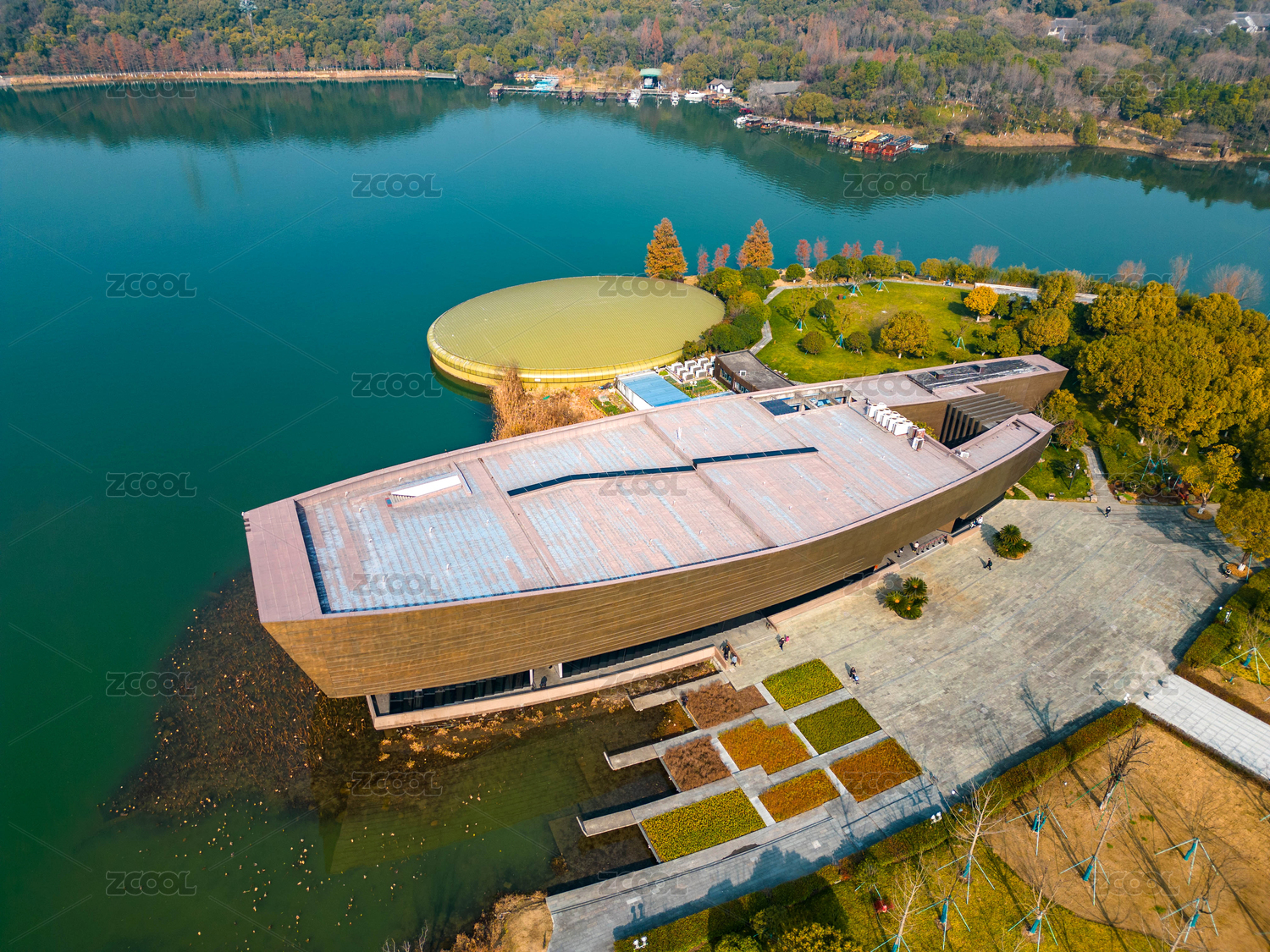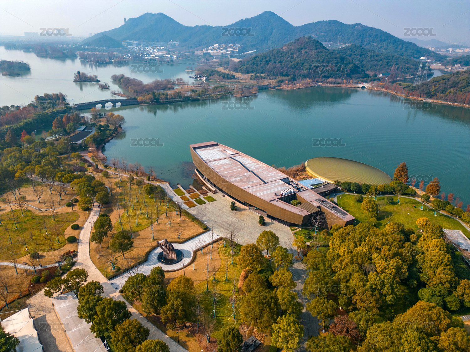中國(guó)浙江杭州湘湖跨湖橋遺址博物館航拍
